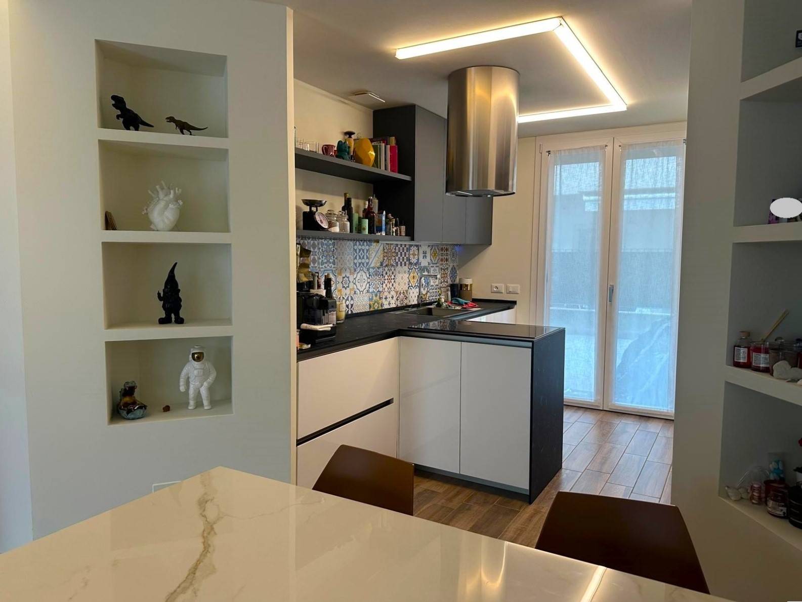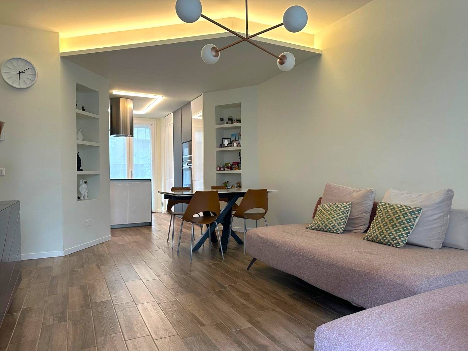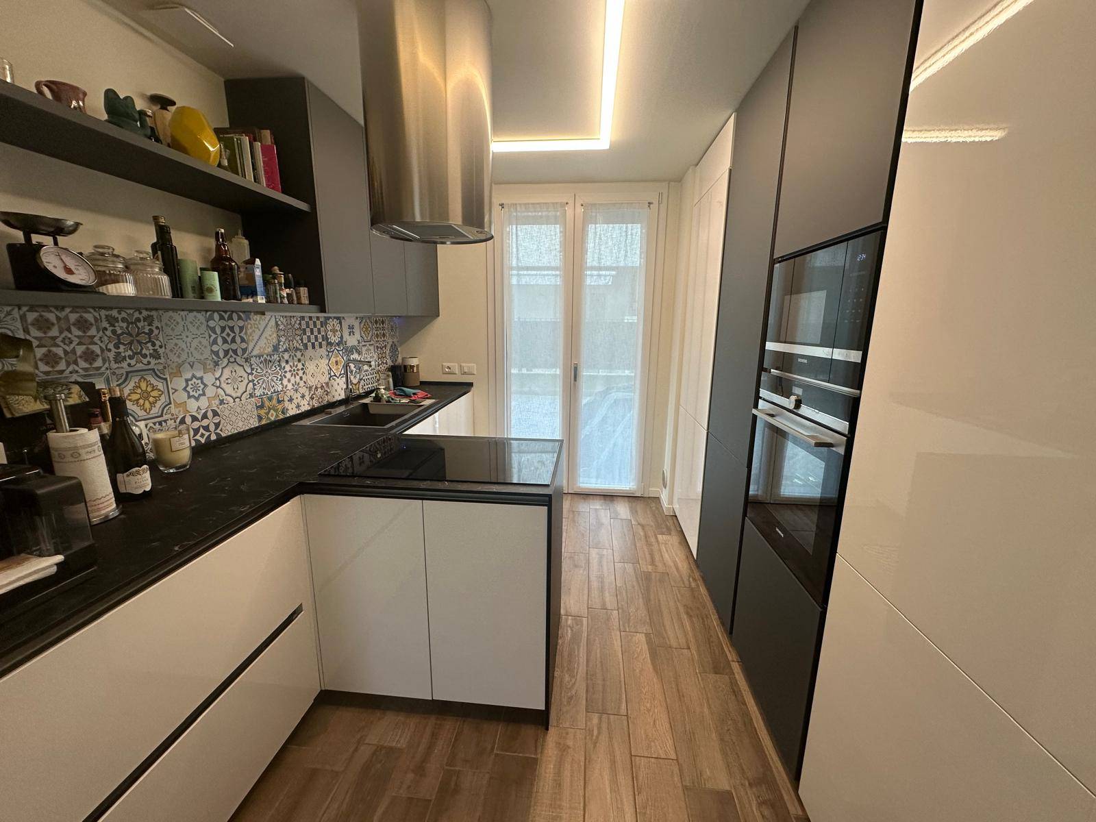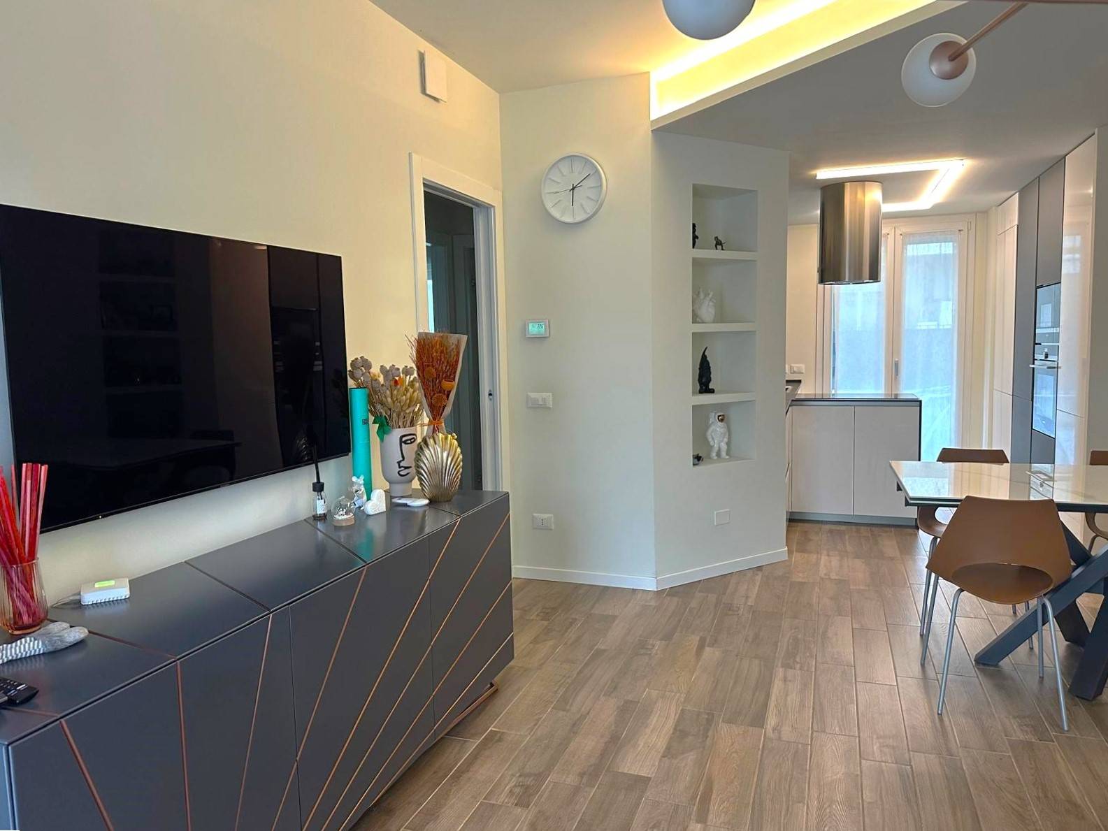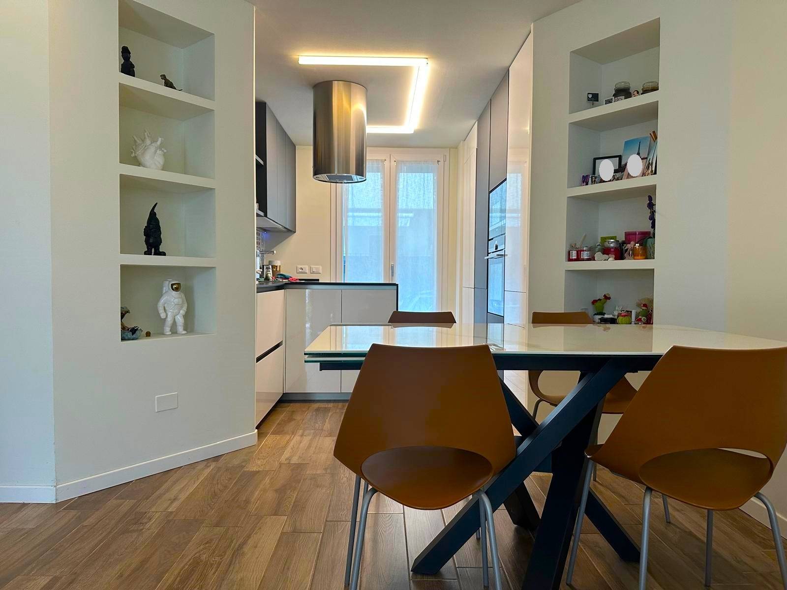 Lingresso conduce a una luminosa zona living con cucina a vista, ambiente accogliente e funzionale, ideale per vivere momenti conviviali in unatmosfera moderna e raffinata.