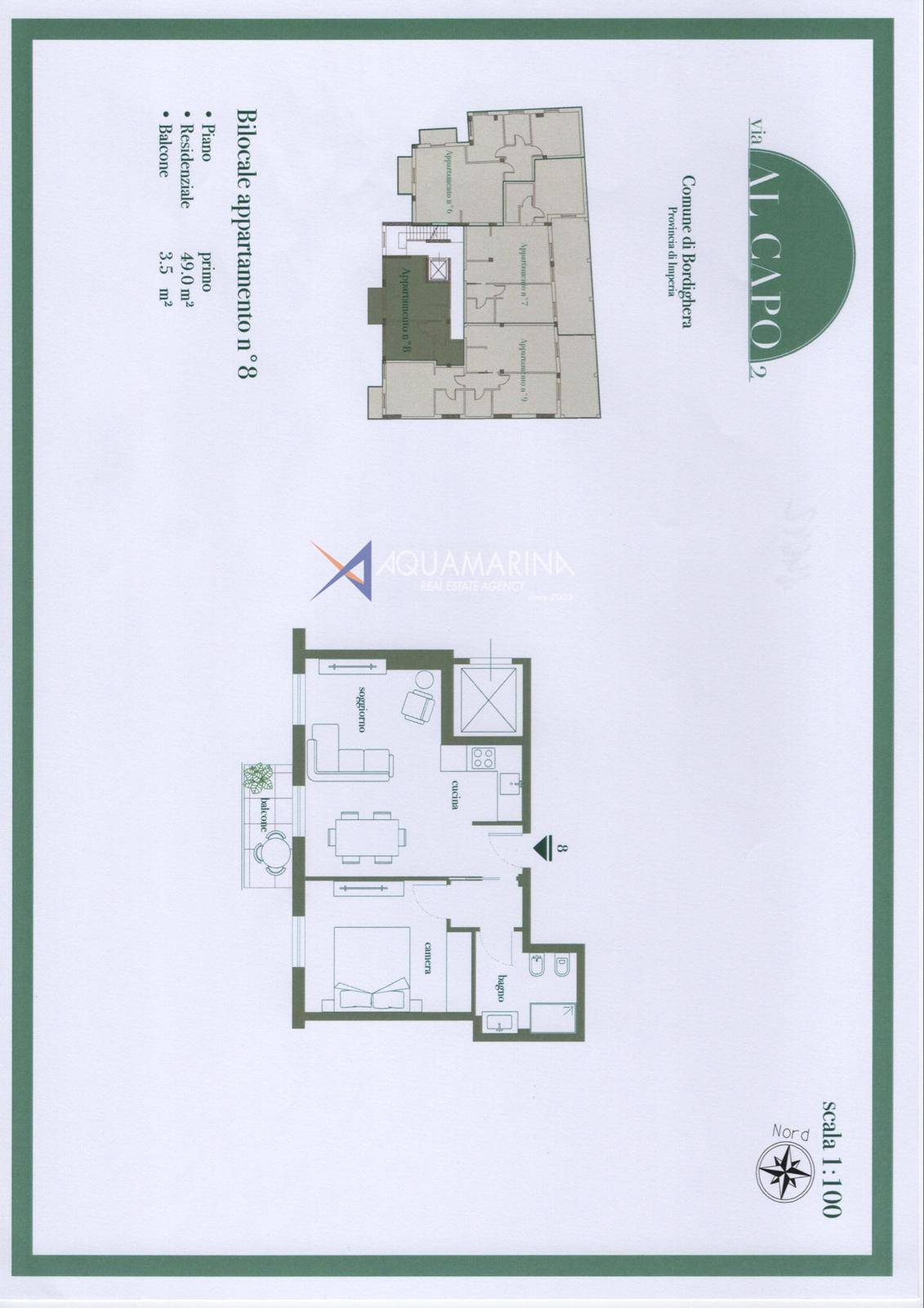 Allingresso del bellissimo borgo storico, nel palazzo esclusivo di nuova costruzione denominato "Via al Capo, a Bordighera Alta, si vende trilocale di 49 mq. al piano primo, con 3.5 mq. dellarea esterna.