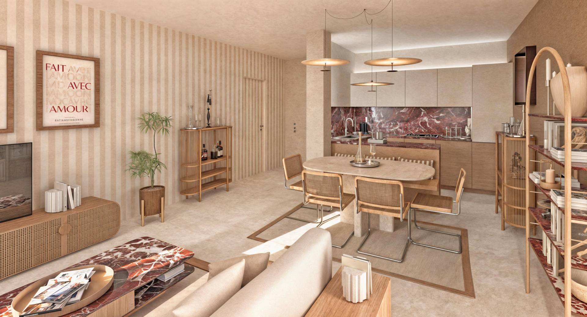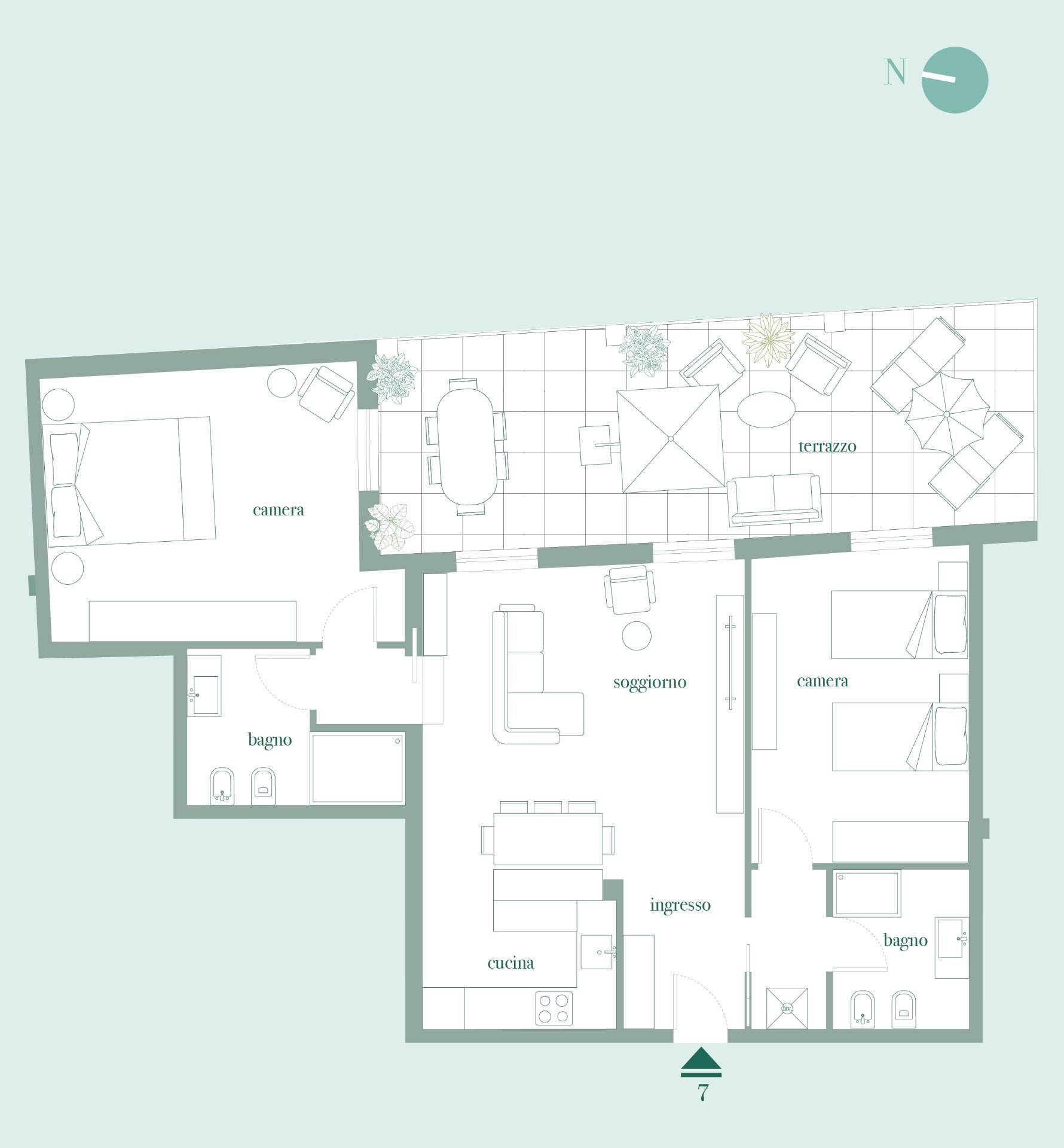 Caratteristiche principali Superficie interna: 93 mq Spazio esterno: 30 mq di terrazzo Stato: nuovo Lappartamento si compone di un ampio soggiorno con doppia finestra e cucina a vista, disimpegno con zona lavanderia, due camere da letto, doppi servizi e un terrazzo perfetto per vivere gli spazi allaperto.