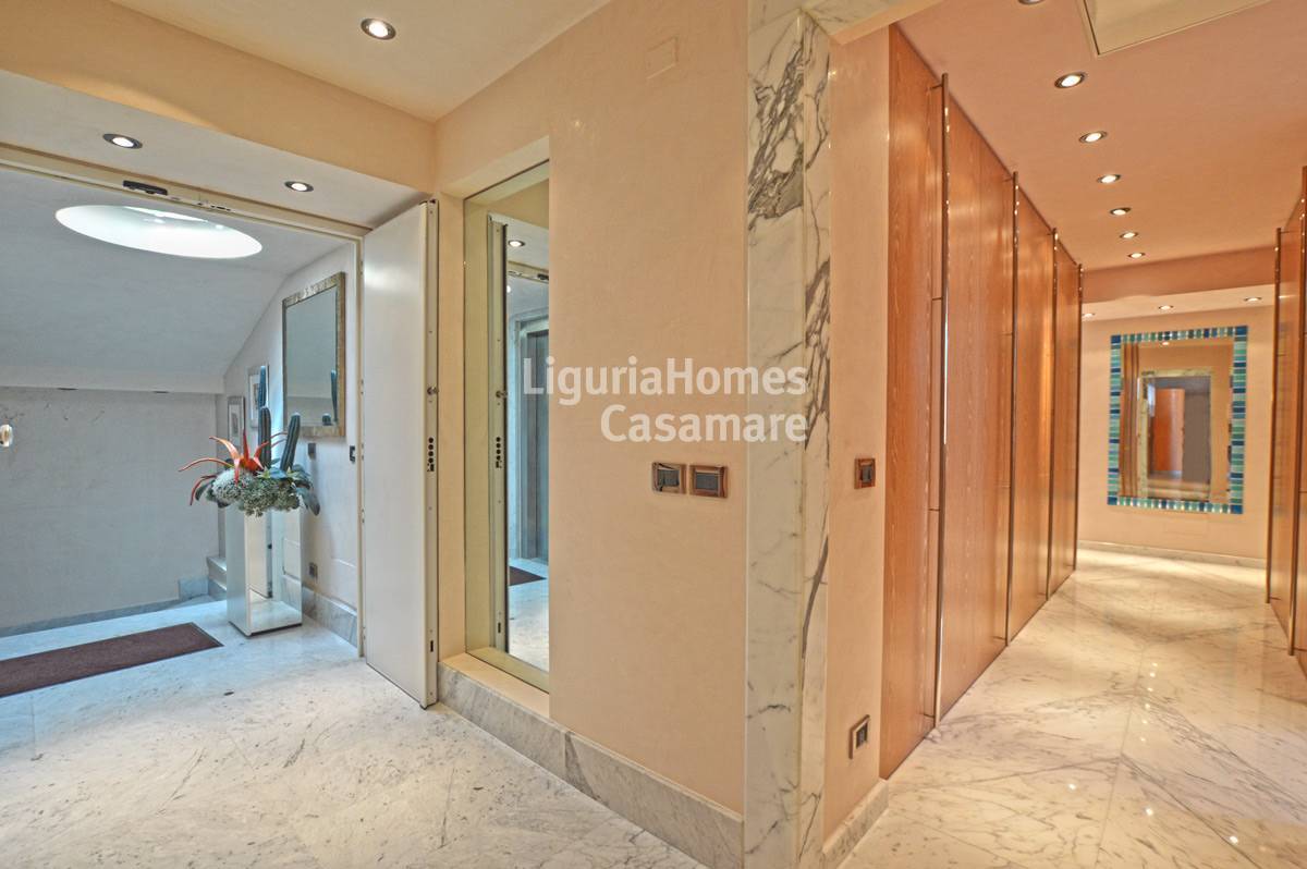 Questo grande appartamento in vendita a Bordighera dotato di accesso privato direttamente dall'ascensore ed composto da: ingresso su spazioso disimpegno, soggiorno con cucina e zona pranzo, terrazza panoramica, 4 camere da letto (eventualmente 5), secondo salotto, 4 bagni tutti rivestiti in splendido marmo ed un ripostiglio/cabina armadi.