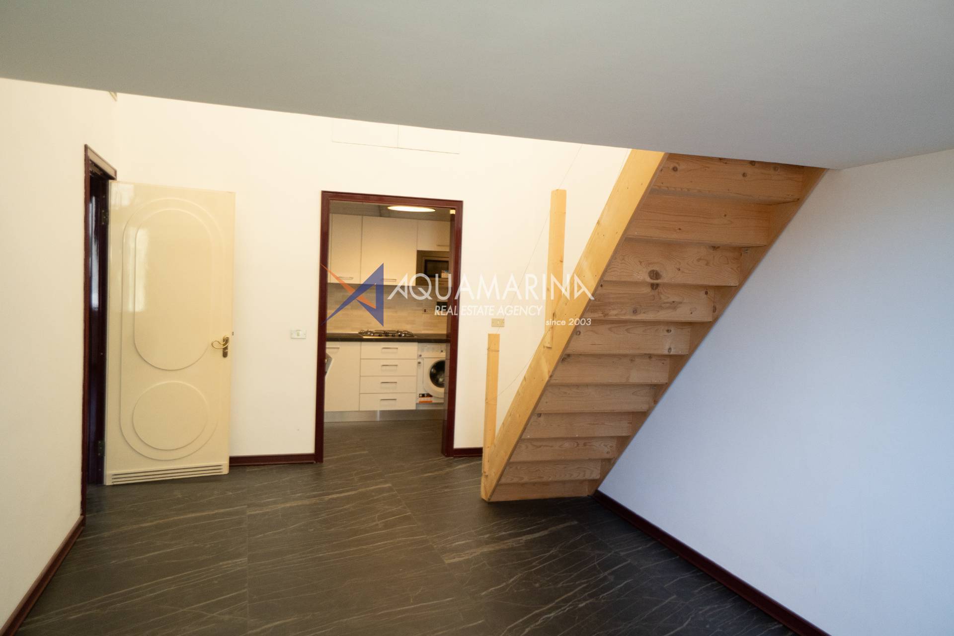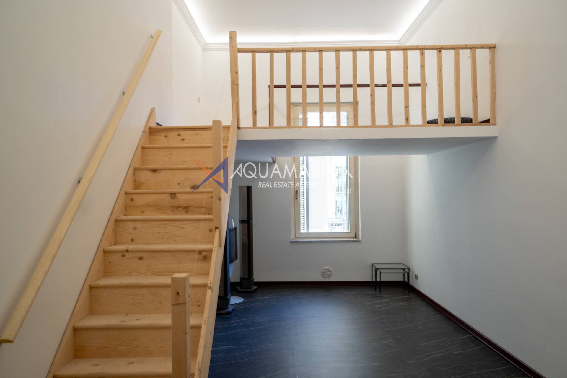 L'appartamento composto di una luminosa camera da letto, bagno moderno, cucina a vista ed attrezzata, soggiorno soppalcato.