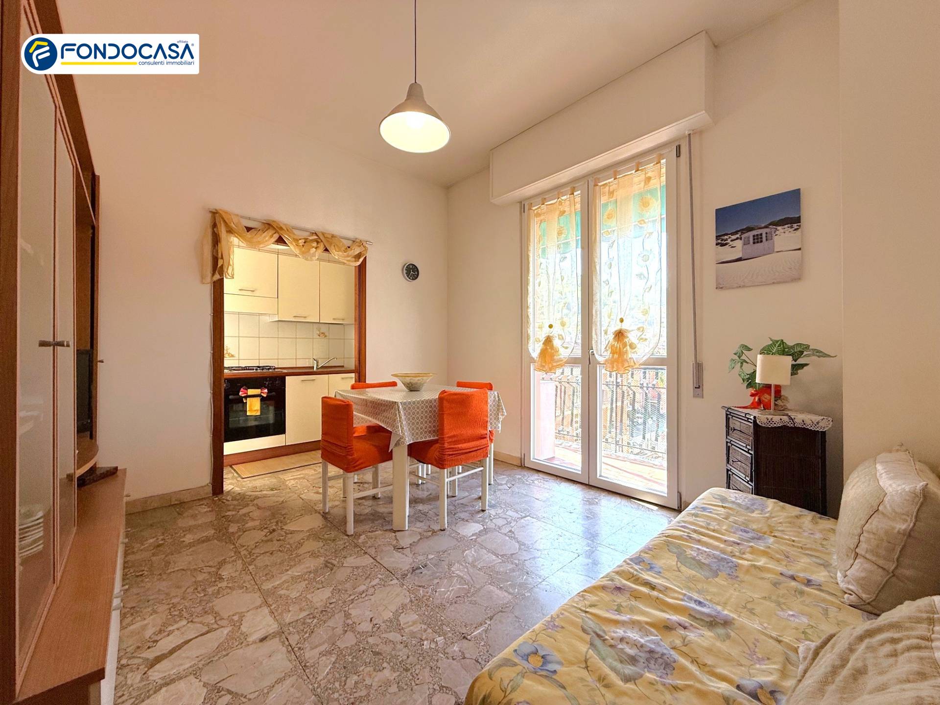 L'immobile composto da ingresso, soggiorno con cucinino, camera matrimoniale, bagno finestrato, ripostiglio e due spaziosi balconi dai quali possibile godere una piacevole vista aperta.