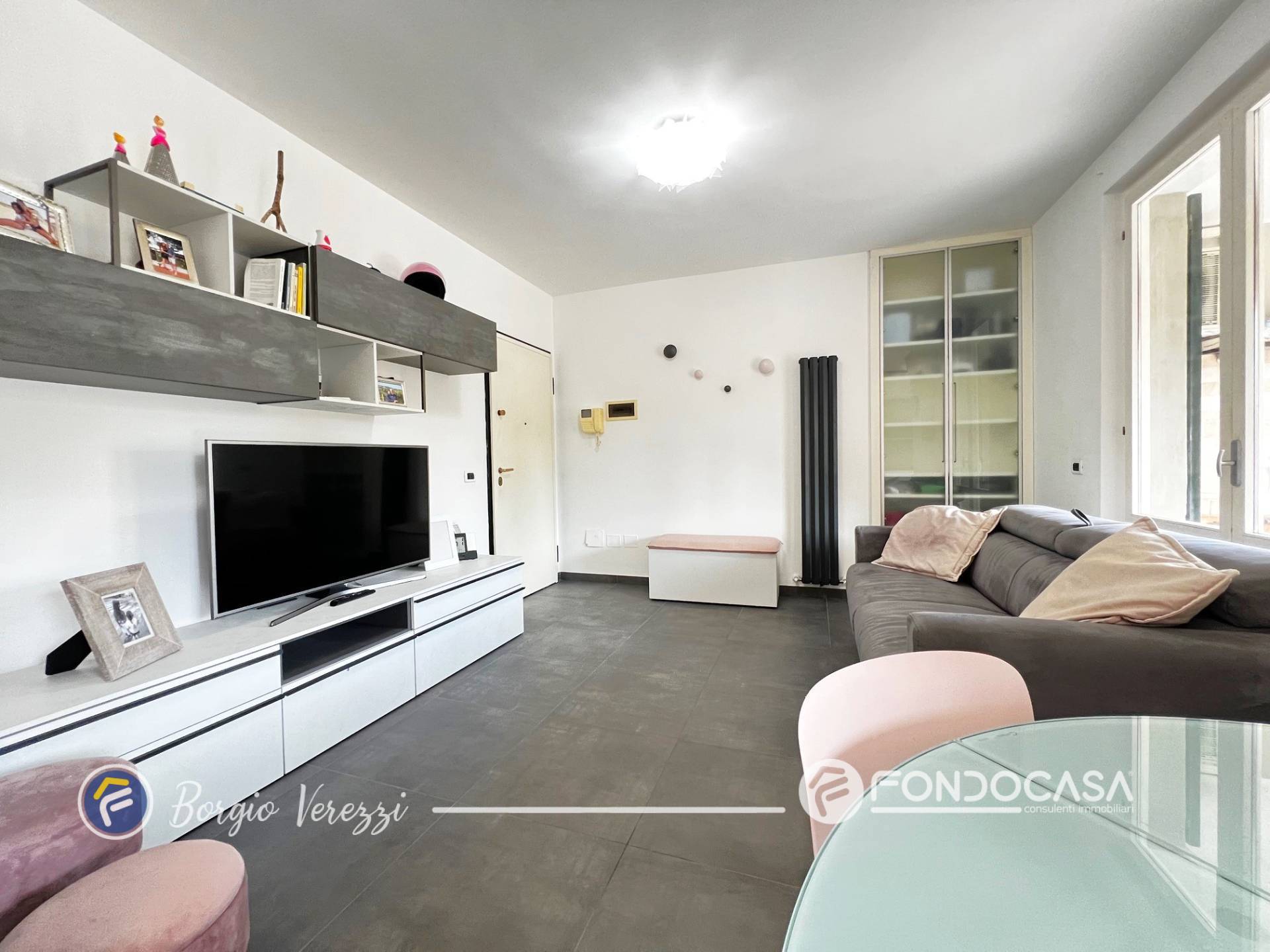 Con una superficie totale di 70 metri quadri, l'appartamento composto da tre locali: un ampio e luminoso soggiorno con cucina a vista, due camere da letto e un bagno completo con doccia e finestra.