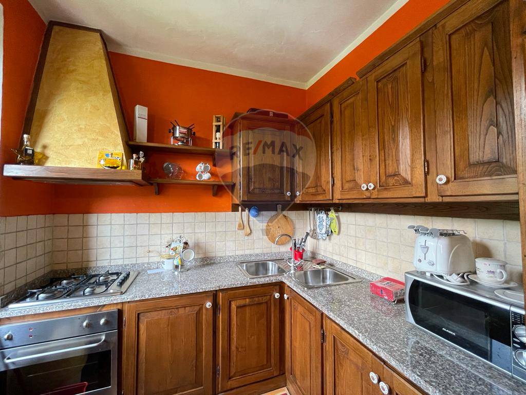 Accediamo da vialetto e scale interne a comune che conducono all'appartamento cos composto: ingresso, soggiorno con camino in pietra e angolo cottura, camera doppia, camera singola, camera matrimoniale, studio e bagno con doccia idromassaggio.