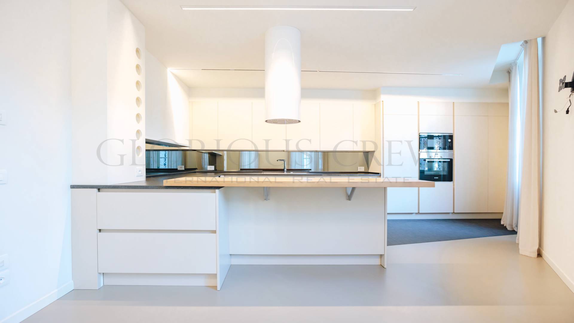 La disposizione interna comprende una zona living con cucina di design con penisola, una zona pranzo e una zona relax, oltre ad un bagno finestrato con vasca idromassaggio, mentre nella zona notte troviamo la master bedroom con fit area, cabina armadio e bagno en suite e una seconda camera da letto.