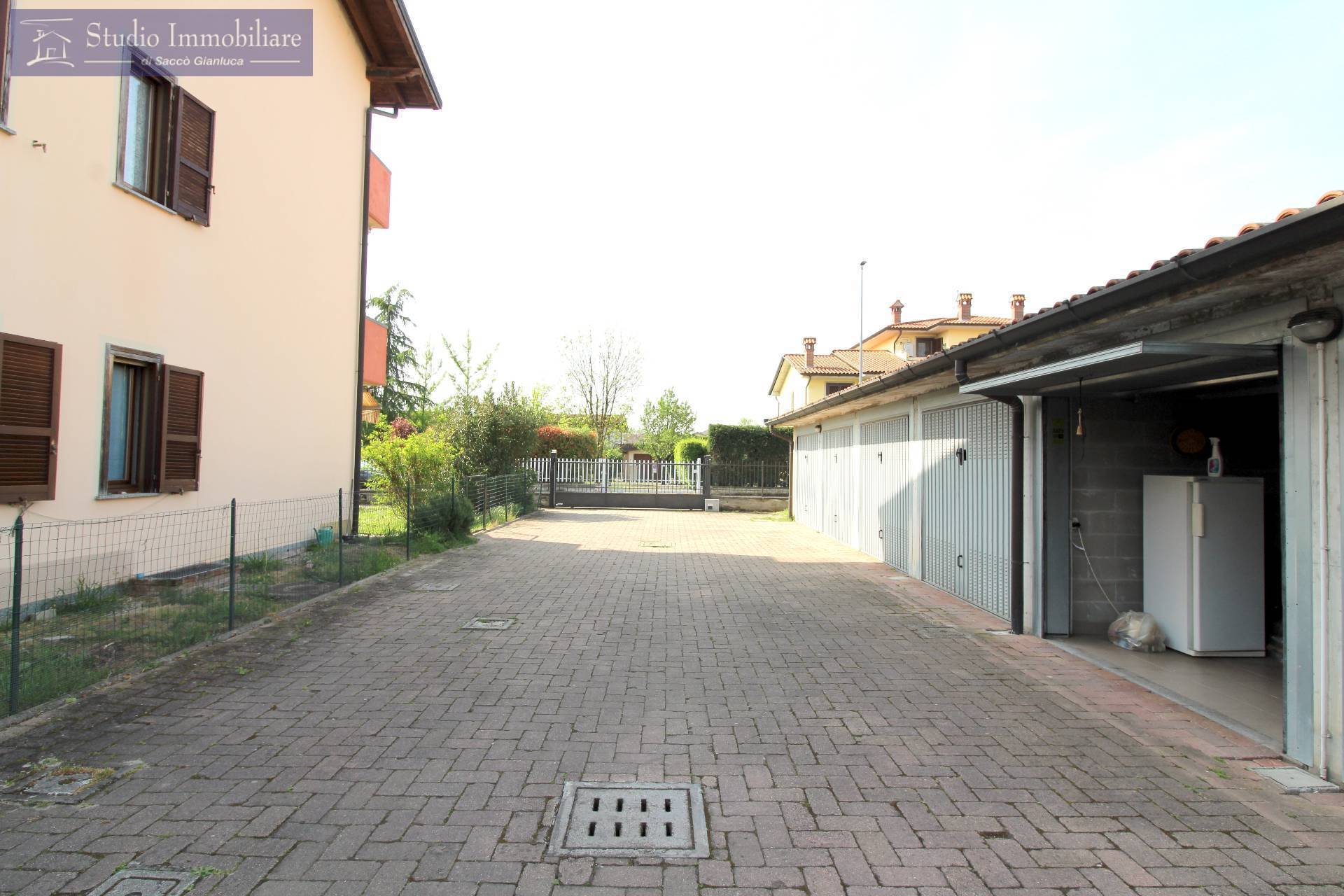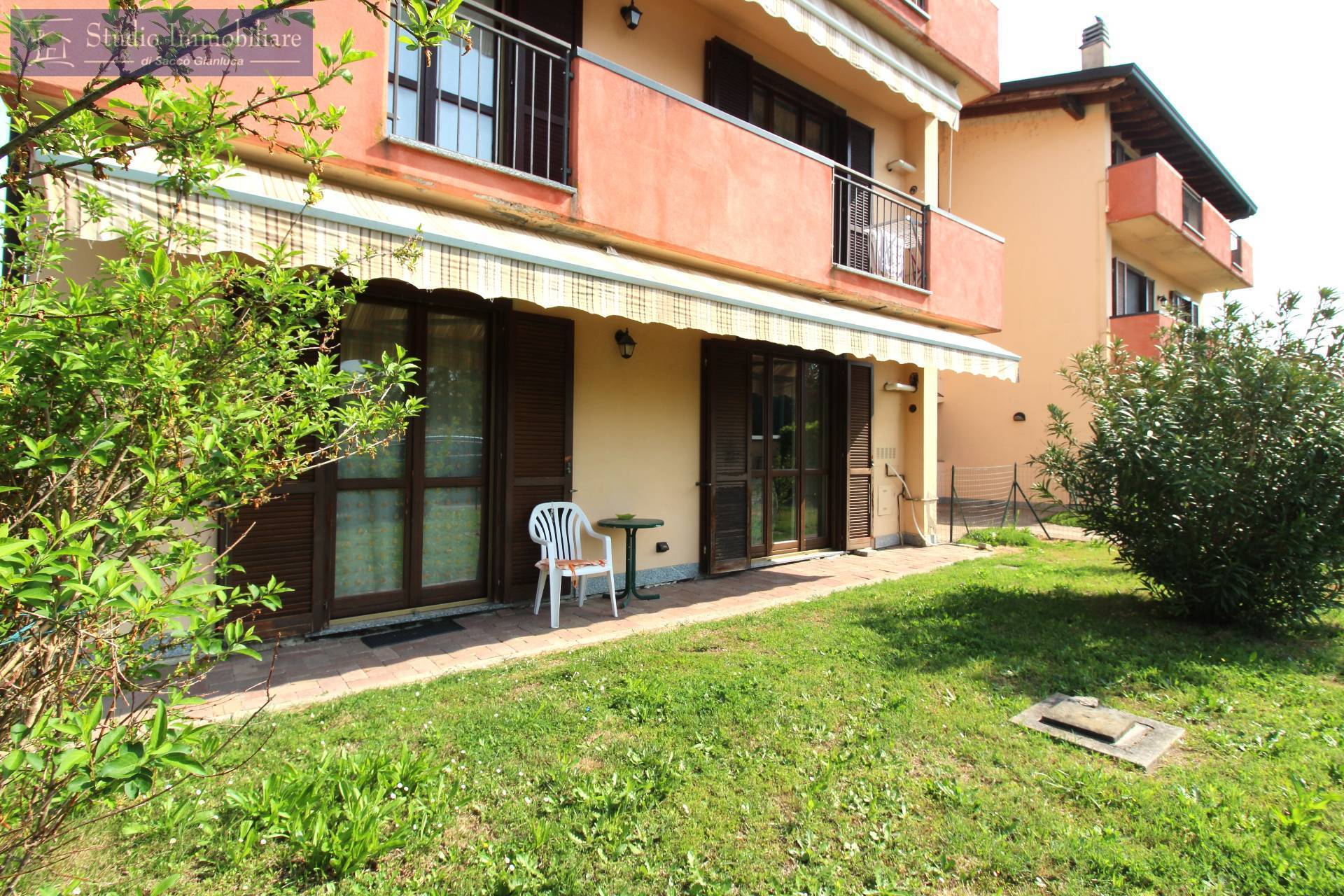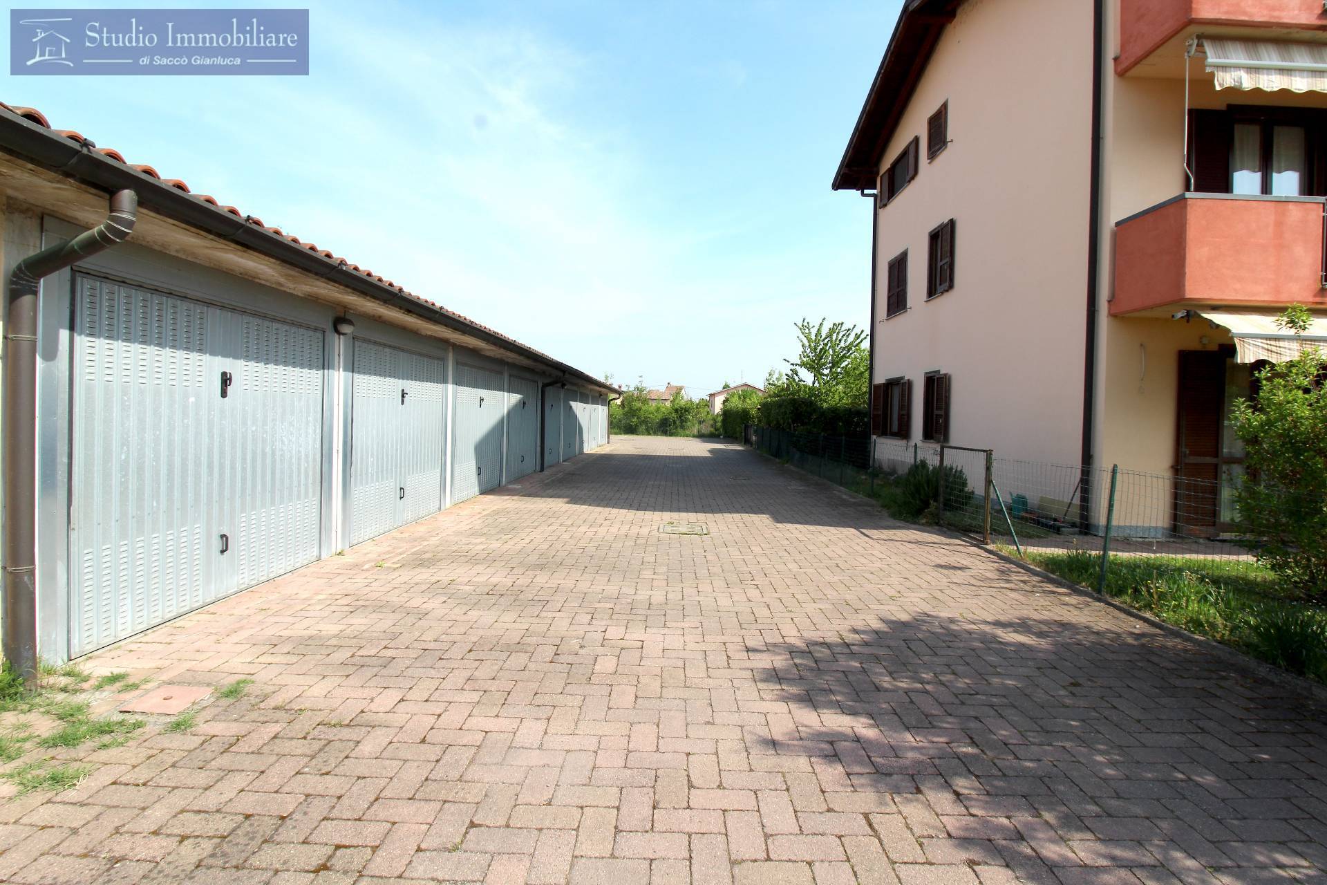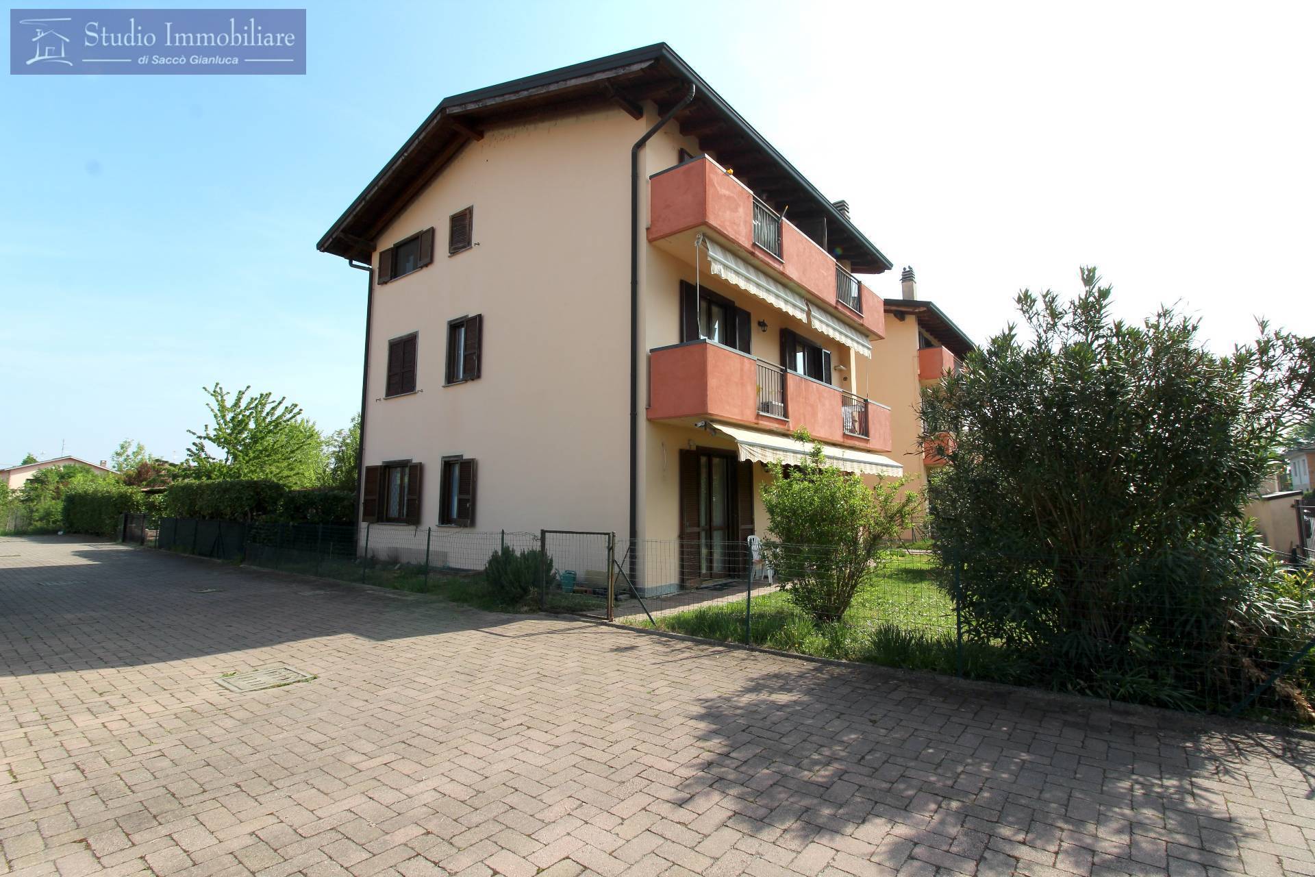 Appartamento con giardino privato di mq.100 in vendita a Bressana in palazzina anno 2005 posta in zona residenziale, sito al piano terra , costituito da soggiorno, cucina abitabile, disimpegno, due camere da letto, bagno, ripostiglio uso servizio, autorimessa e cantina.