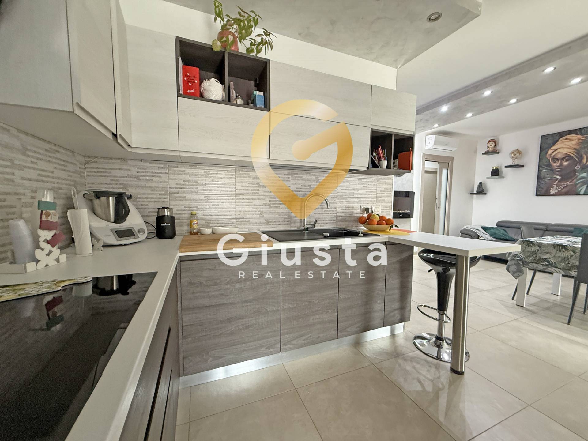 La vera anima della casa la zona giorno, ampia e luminosa, che si apre su un terrazzo abitabile, un angolo dove la vita scorre pi lentamente: il primo caff del mattino, le risate di una cena con amici, il silenzio dorato di un tramonto.