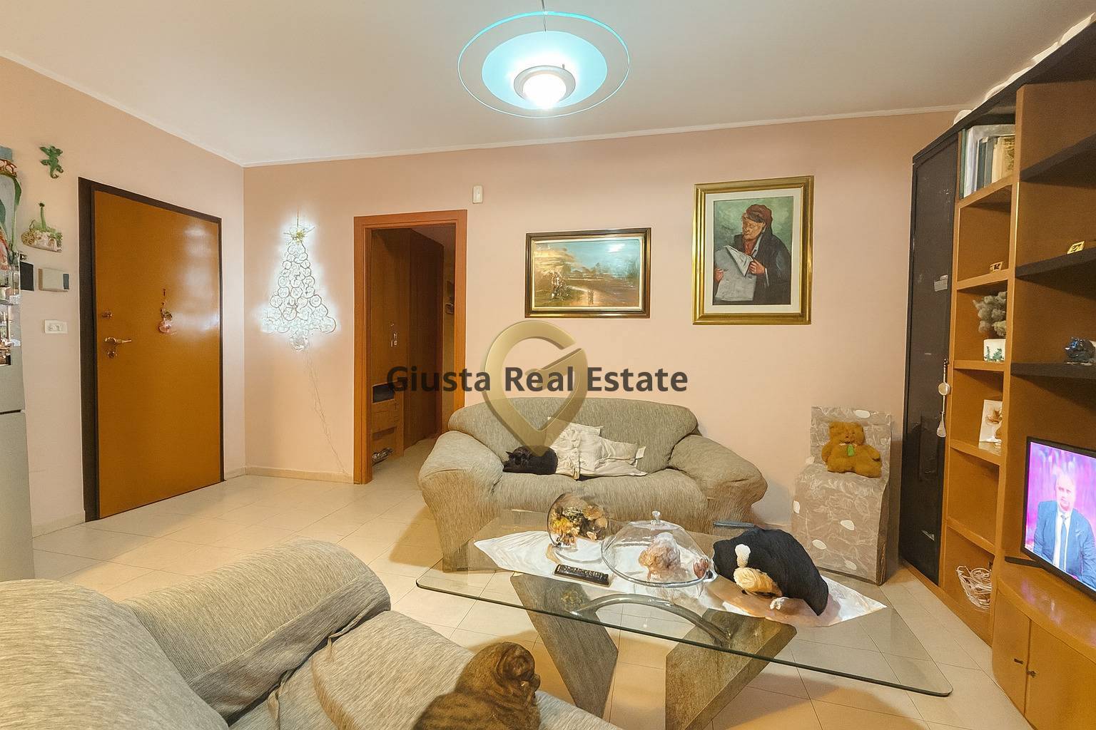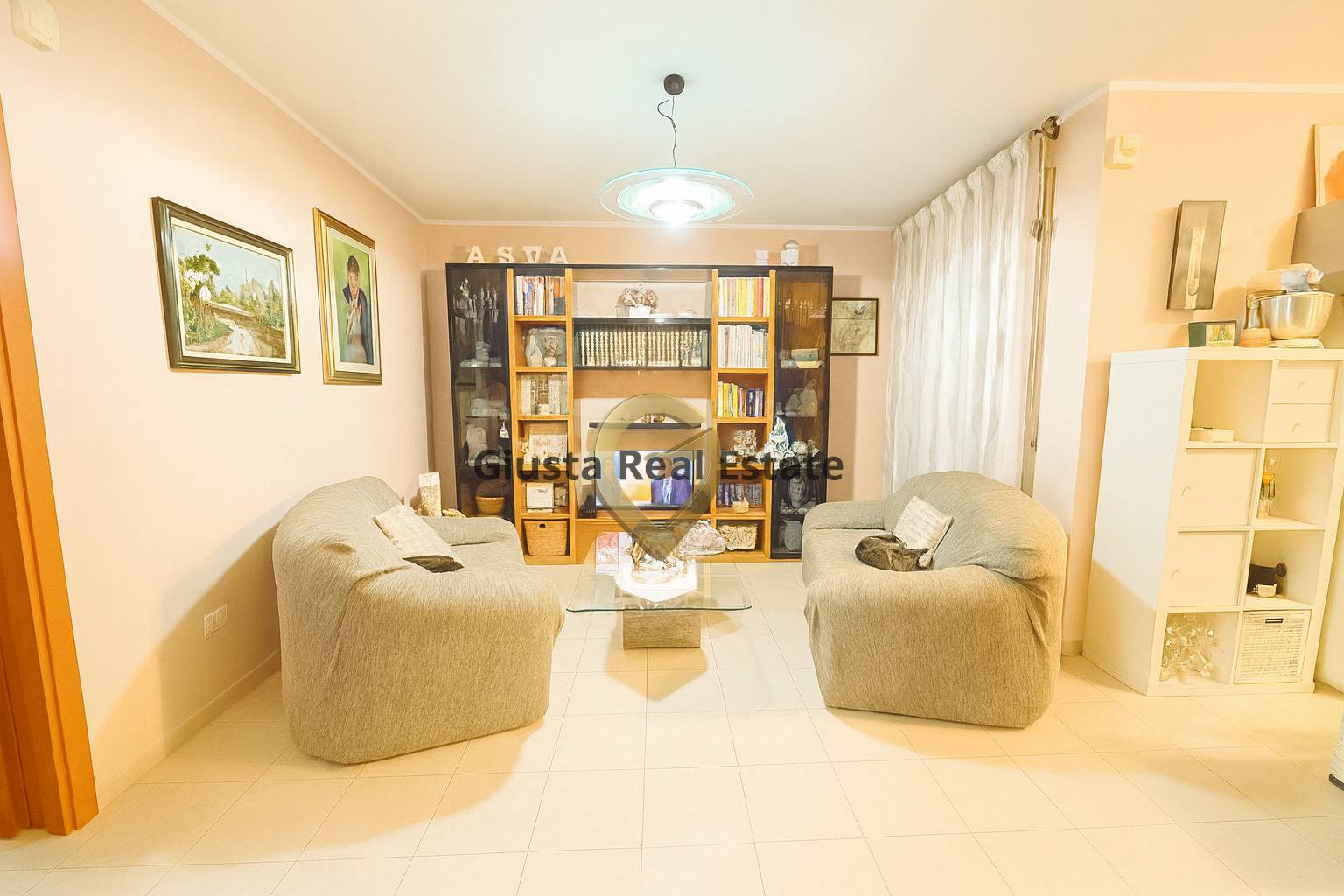 Varcando la porta, il soggiorno ti abbraccia con la sua atmosfera calda e familiare: la luce filtrata dalle tende, i colori morbidi, gli spazi comodi che invitano a rallentare.