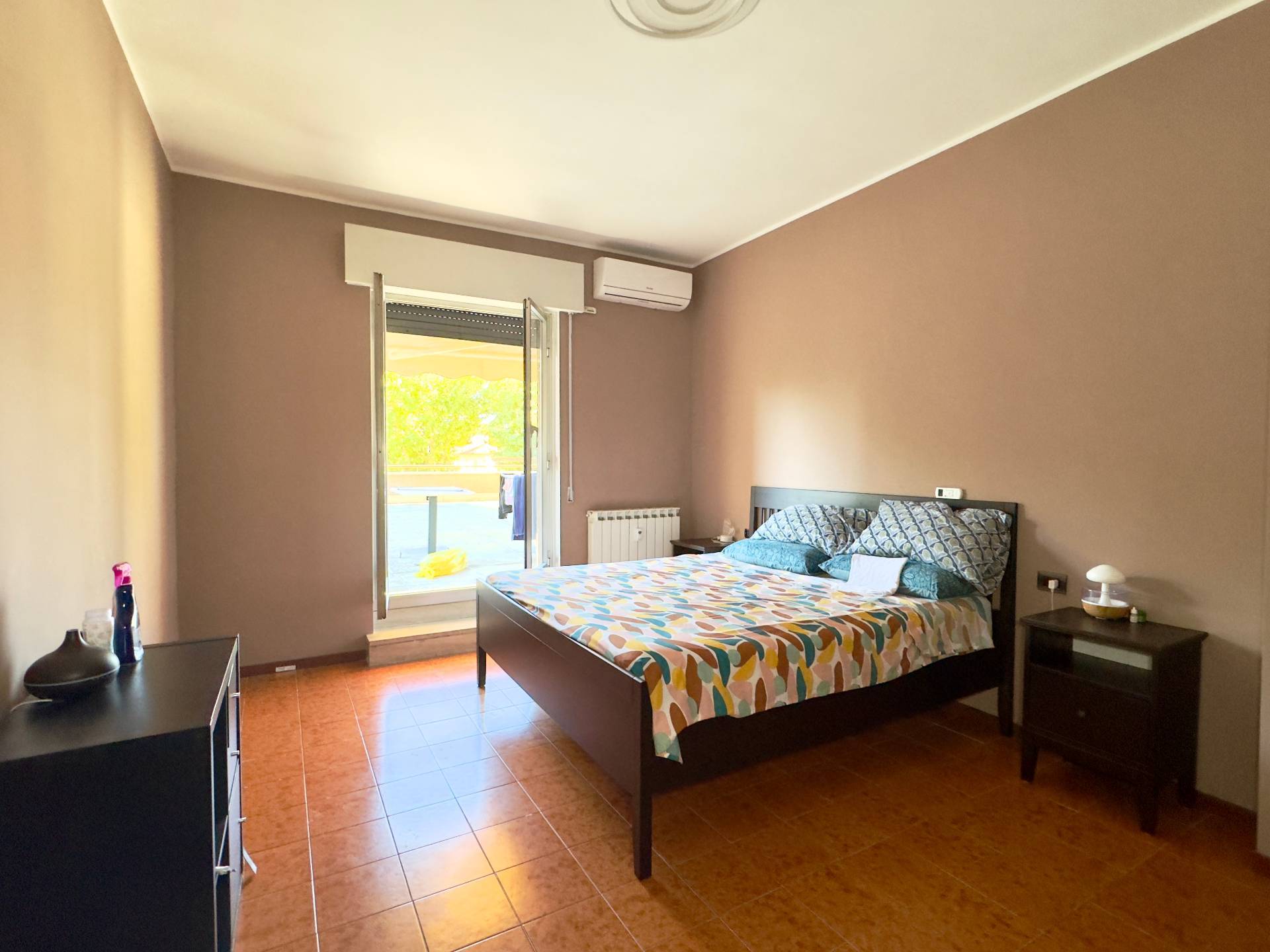 La zona notte composta da tre camere da letto: la prima attualmente adibita a studio, con accesso al terrazzo, la camera matrimoniale, dotata di aria condizionata e accesso diretto al terrazzo, una terza camera, anchessa ben illuminata e di buona metratura.