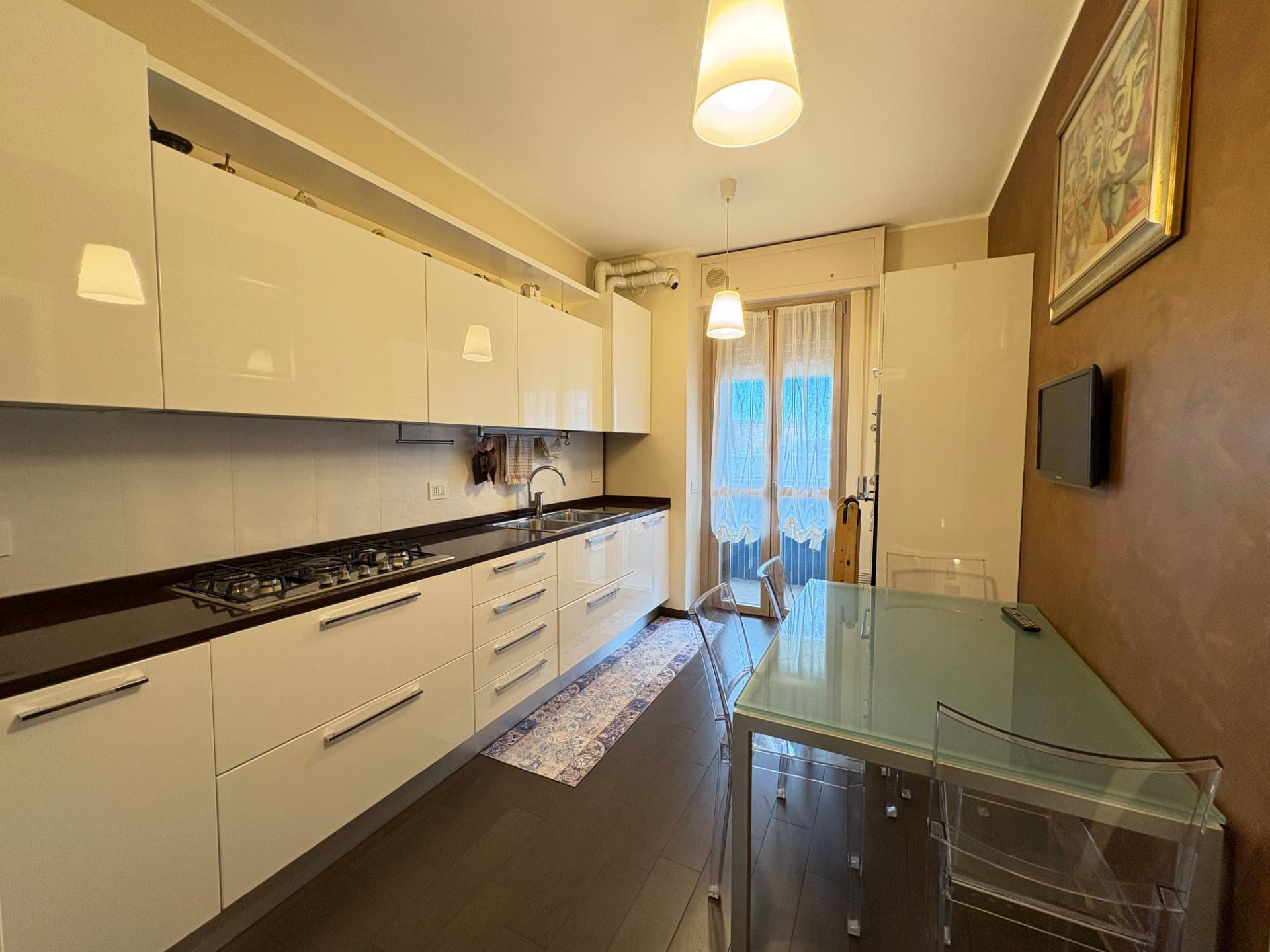 In zona residenziale vicina al centro paese, inserito contesto condominiale signorile servito da ascensore, proponiamo in vendita ampio appartamento di 3 locali, doppi servizi con cucina abitabile, cabina armadio in camera matrimoniale, lavanderia/ripostiglio balcone, terrazzino, cantina e box auto. L'immobile e rifinito con materiali e finiture di alta qualit, con imp. allarme, climatizzazione, serramenti in PVC (alcune tapparelle motorizzate) e altro.