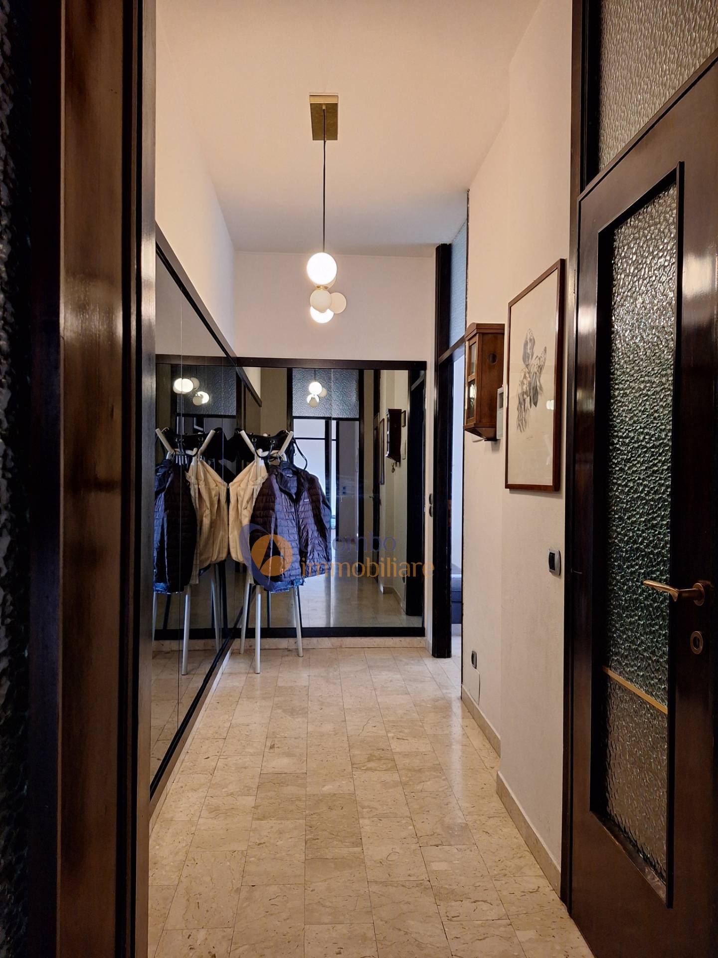 I pavimenti, ad eccezione della cucina e del bagno, sono quelli originali: marmo nella zona giorno e parquet nelle camere.