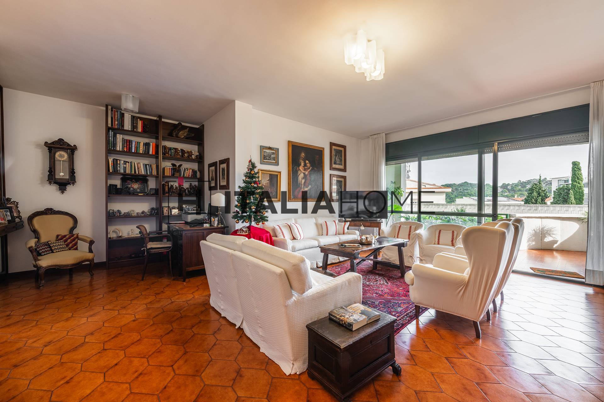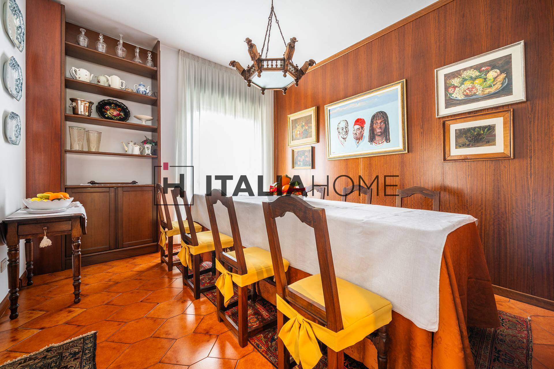 Si entra in casa da un ampio ingresso che accoglie con calore, un grande salone luminoso, grazie all'ampia vetrata che si affaccia sulla veranda abitabile, spazio perfetto per trascorrere momenti di relax ammirando la citt. Unita al salone, in un ambiente riservato abbiamo la sala da pranzo.