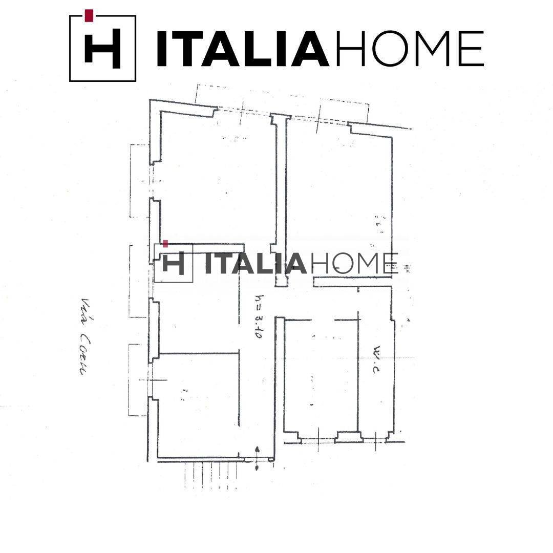 L'immobile composto da quattro camere, ognuna con il proprio balcone, cucina abitabile e un bagno ristrutturato con doccia.