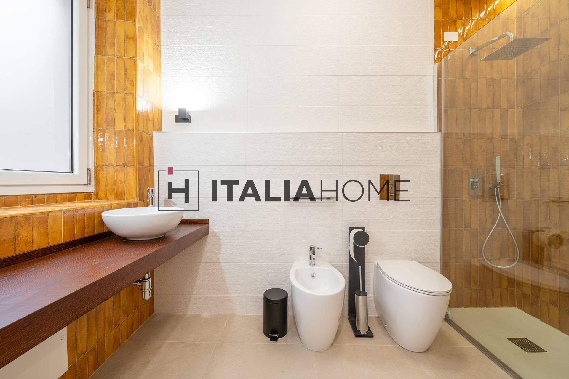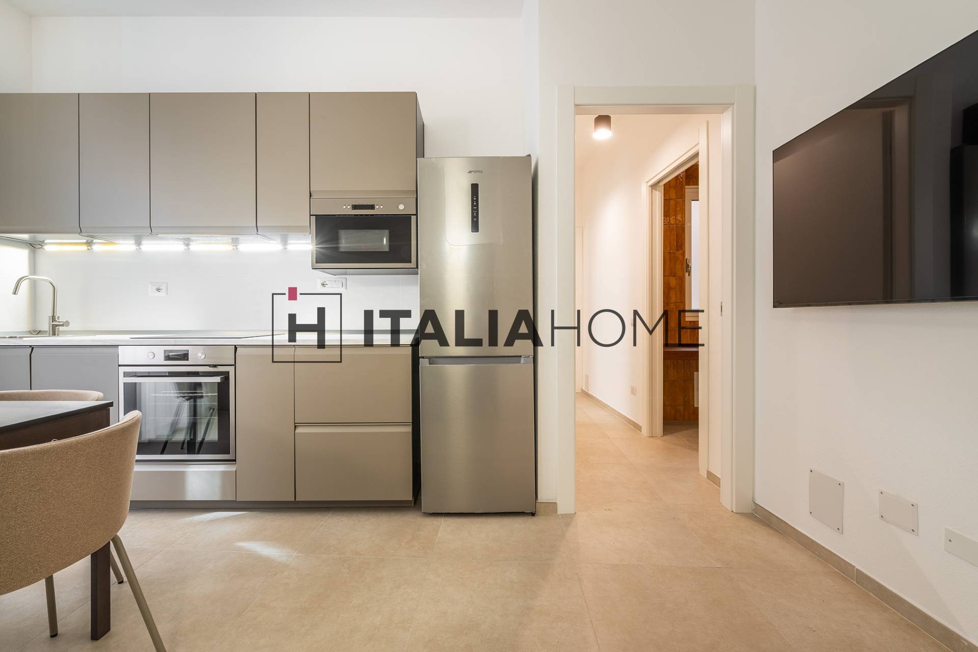 Un appartamento al secondo piano di un elegante stabile con ascensore, completamente ristrutturato a nuovo e arredato con gusto raffinato.