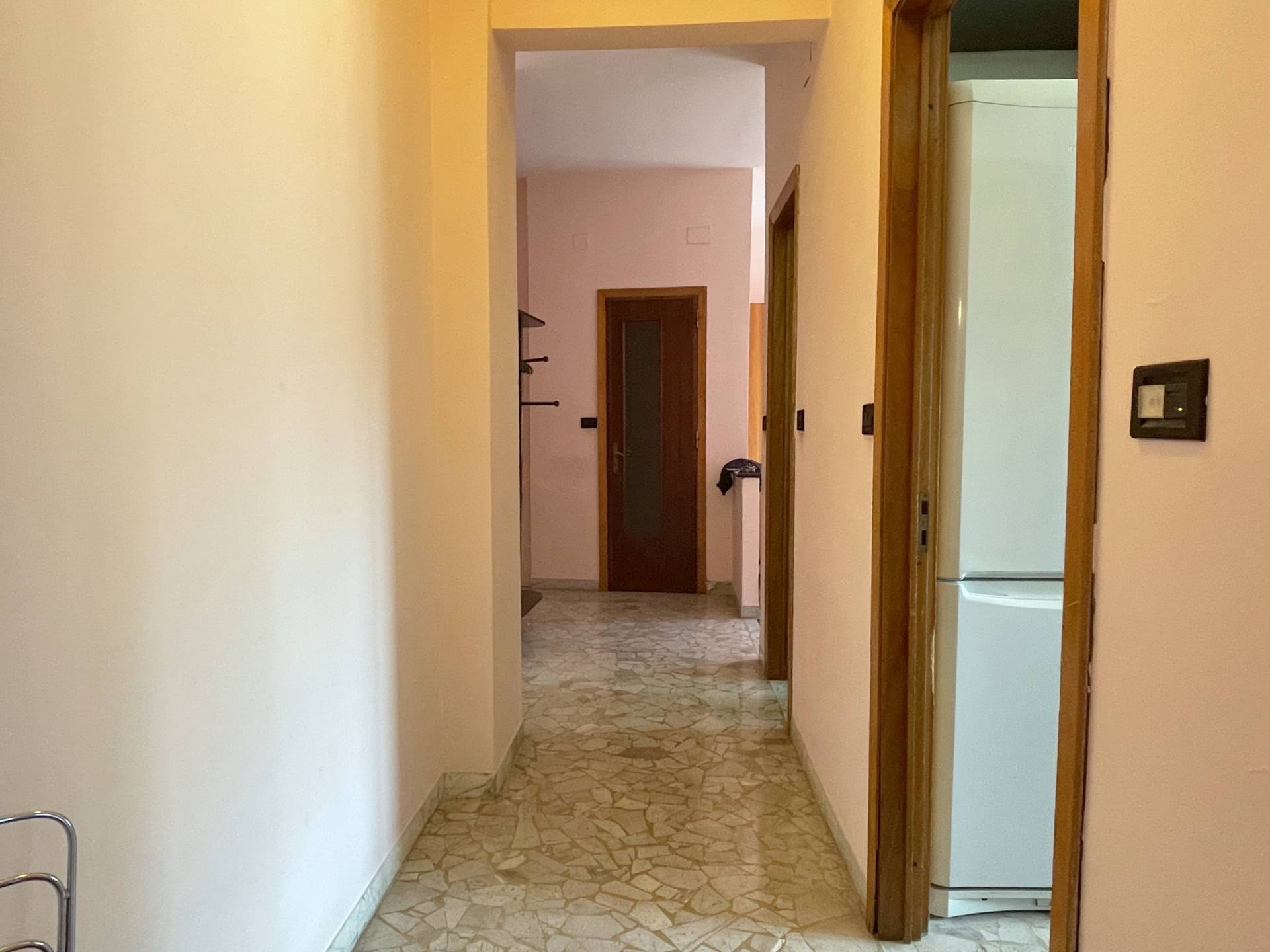 Lingresso si apre su un comodo disimpegno che conduce a una sala accogliente, facilmente adattabile a seconda camera da letto, alla cucina, al bagno, alla camera matrimoniale ampia e ad un pratico ripostiglio.