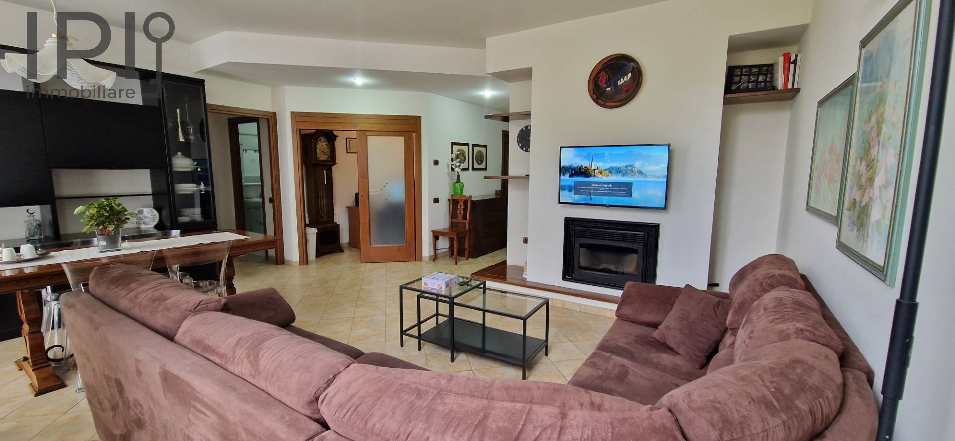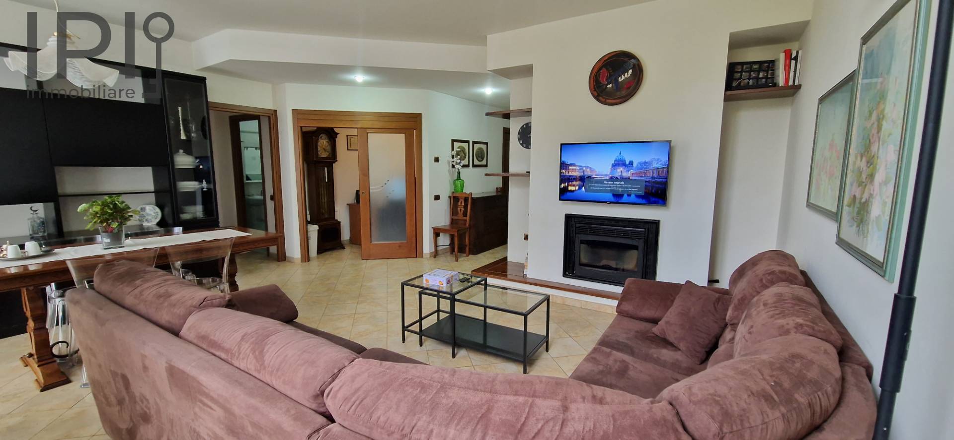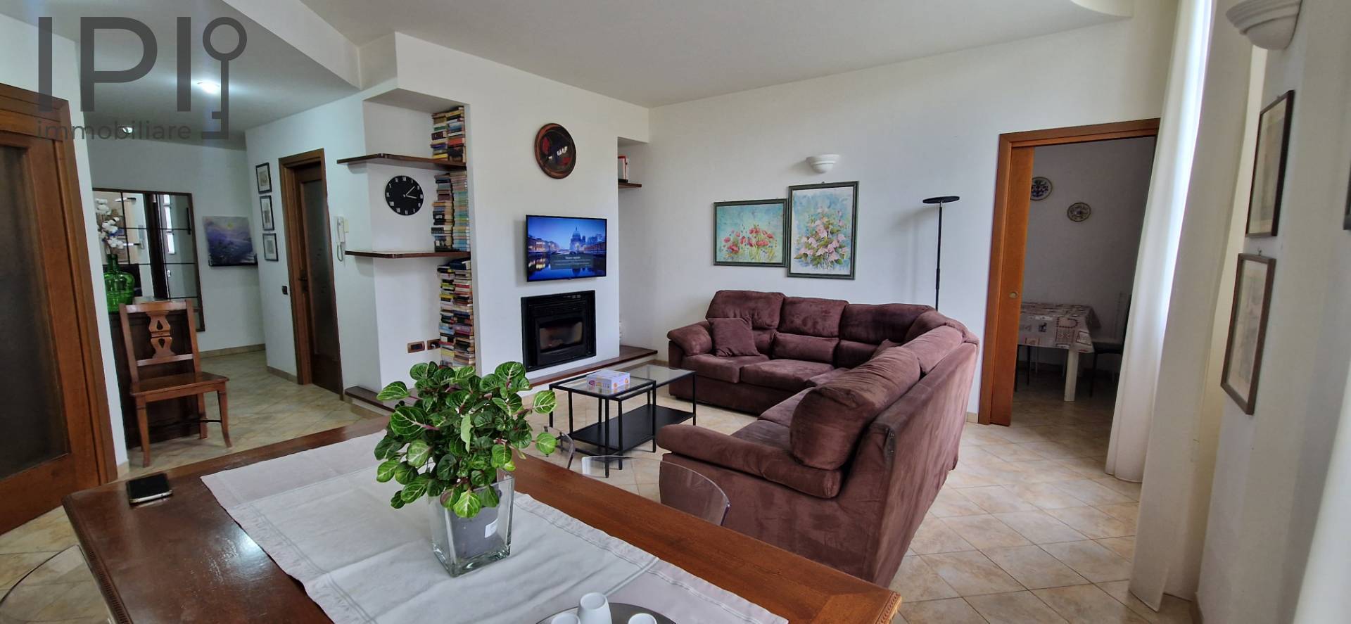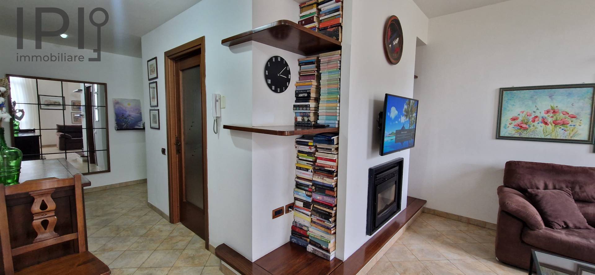 Posto al secondo piano con ascensore, ci accoglie con un ampio ingresso che rimanda alla spaziosa ed accogliente zona giorno con bellissimo caminetto ed ampie superfici finestrate; il cartongesso ai soffitti, che ospita anche parte dell' impianto di illuminazione, crea un atmosfera calda, ospitale e non banale.