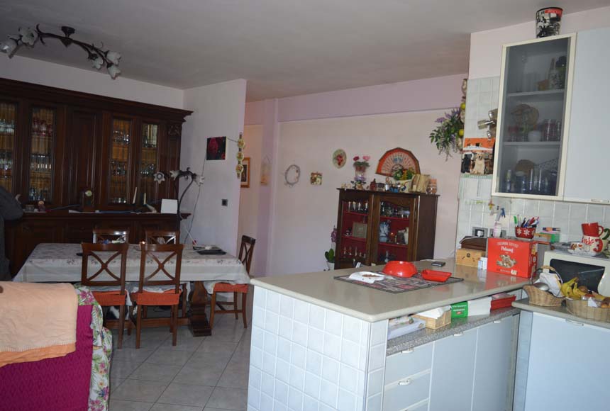 Appartamento al terzo piano senza ascensore composto da soggiorno con cucina a vista, camera matrimoniale, grande bagno e dispensa.
