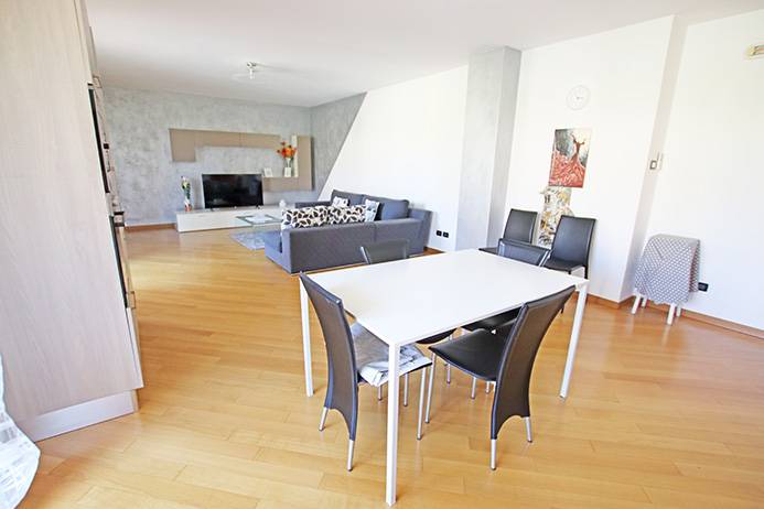 L'immobile si trova in perfette condizioni d'uso, dotato di pavimenti in parquet e ceramica, riscaldamento autonomo a pavimento, aria condizionata, infissi con doppio vetro, porta blindata.