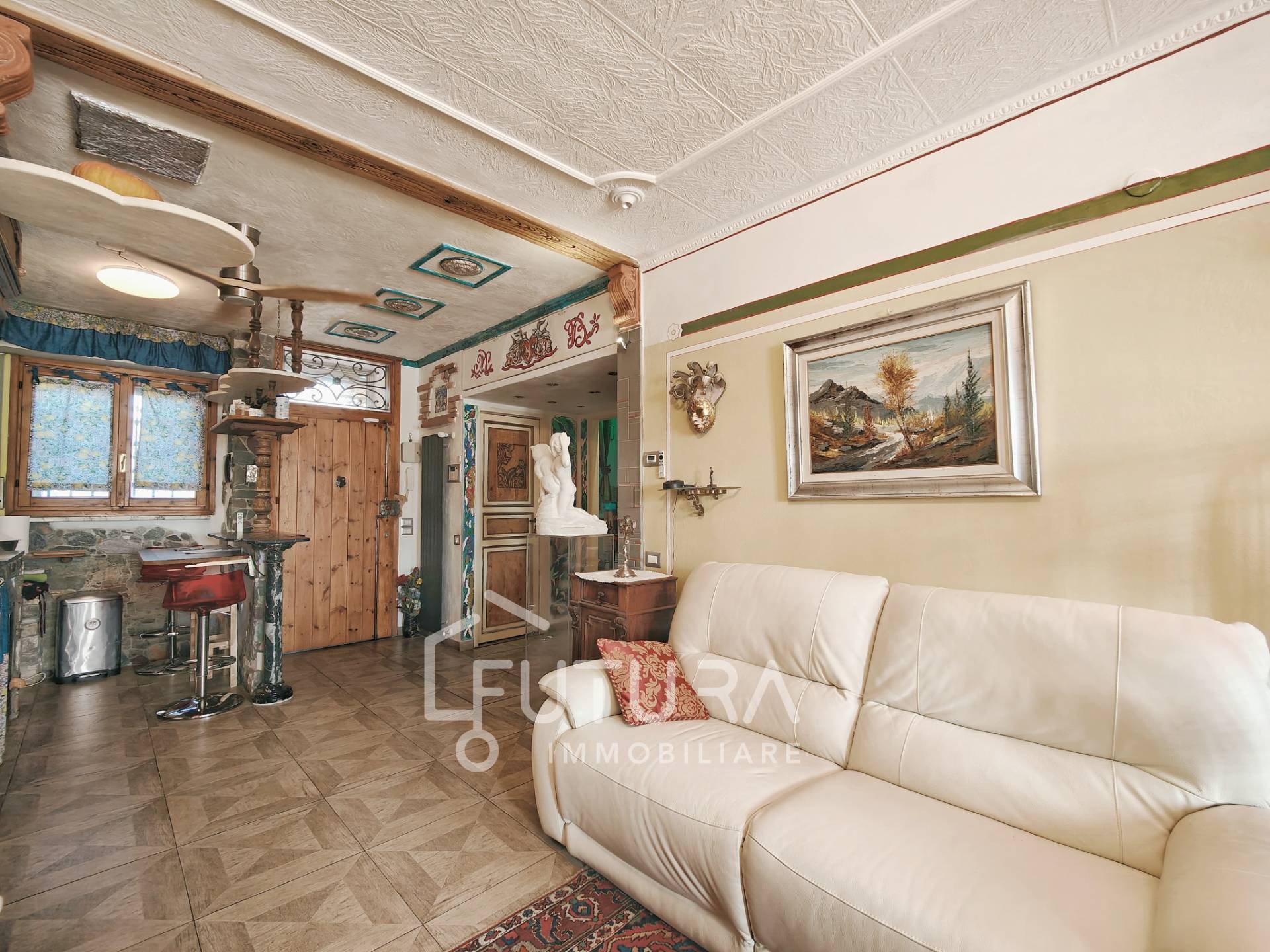 Completo di condizionatori e stufa a pellet (in supporto al riscaldamento autonomo a metano), ha beneficiato anche di una ristrutturazione del tetto nel 2024. Questo appartamento ideale per chi cerca un'abitazione dal carattere tipico dato dalle molteplici rifiniture artigianali, che combinano vari materiali tra legno, pietre e marmi.