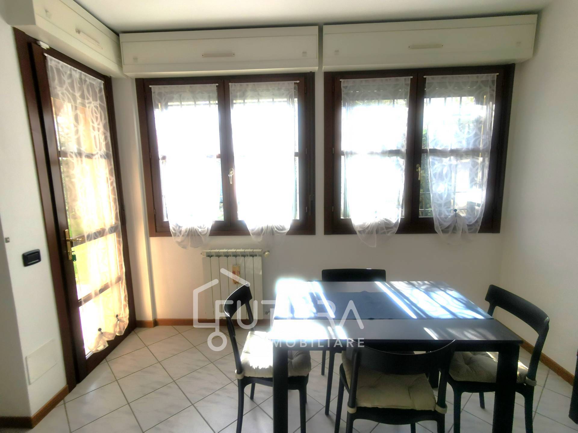 La zona giorno, ampia e ben distribuita, si apre direttamente sul verde, creando unatmosfera calda e accogliente.