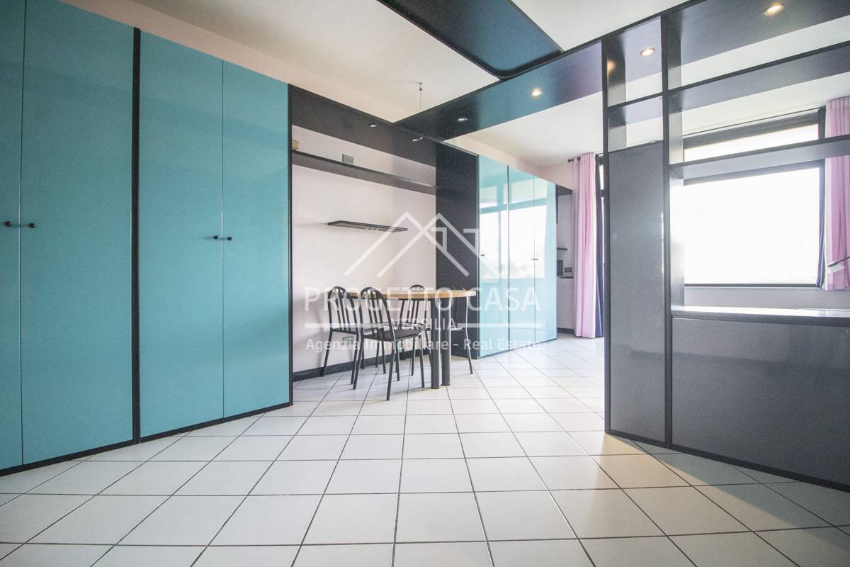 Varcando la soglia d'ingresso di questo appartamento, situato al piano primo di un complesso condominiale, si accede direttamente all'ampio vano open space.
