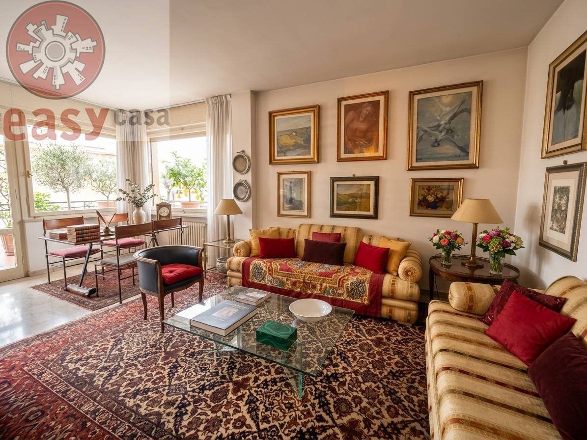 L'appartamento si compone di : ampia sala con apertura sulla bella TERRAZZA abitabile , ideale per cene all'aperto , cucina-pranzo, disimpegno , tre camere doppie , due bagni con finestra.