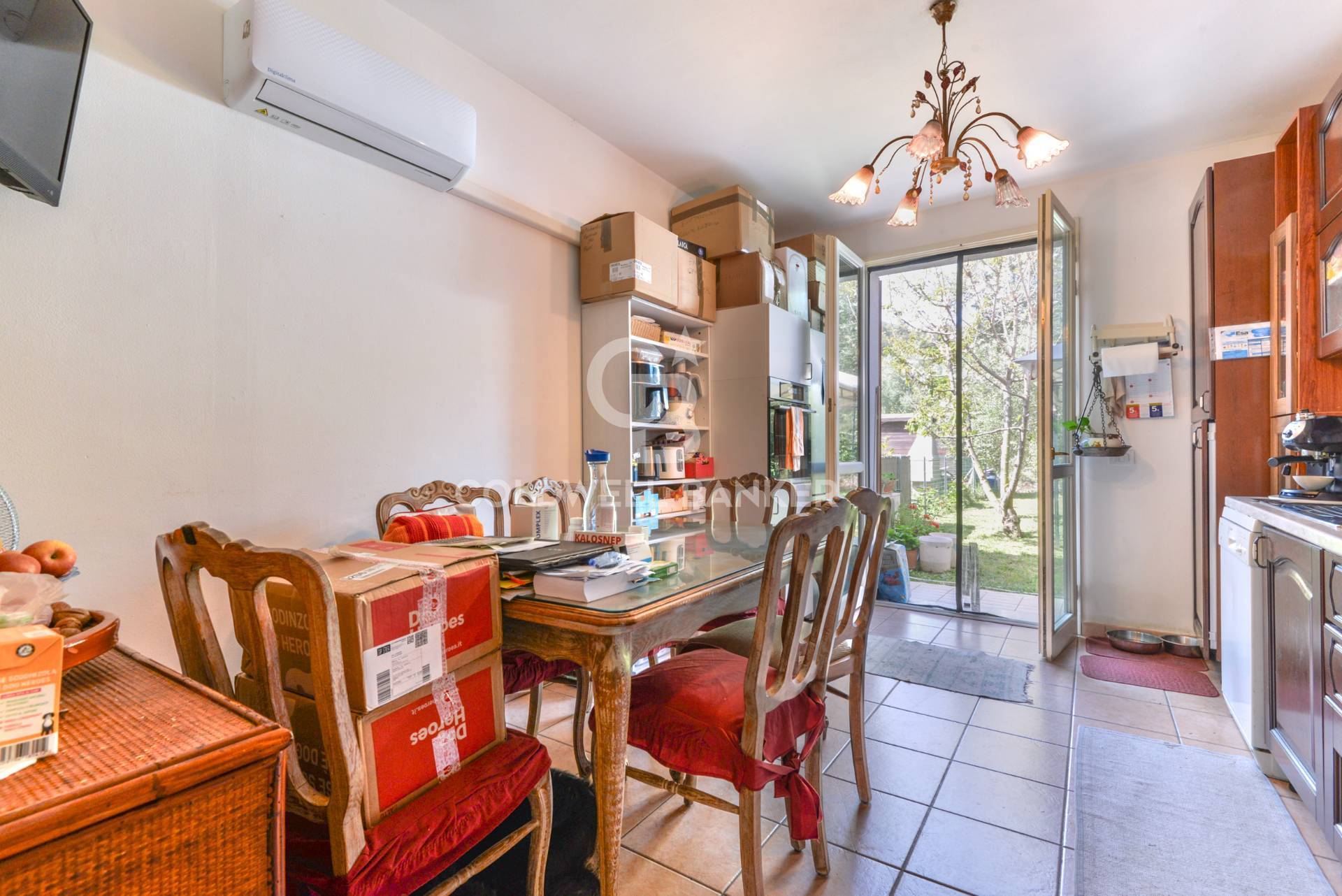 Lingresso avviene direttamente dal cortile esterno privato, conducendo alla zona giorno luminosa con cucina a vista con porta finestra che permette laccesso al giardino principale, perfetto per vivere lesterno in ogni stagione.