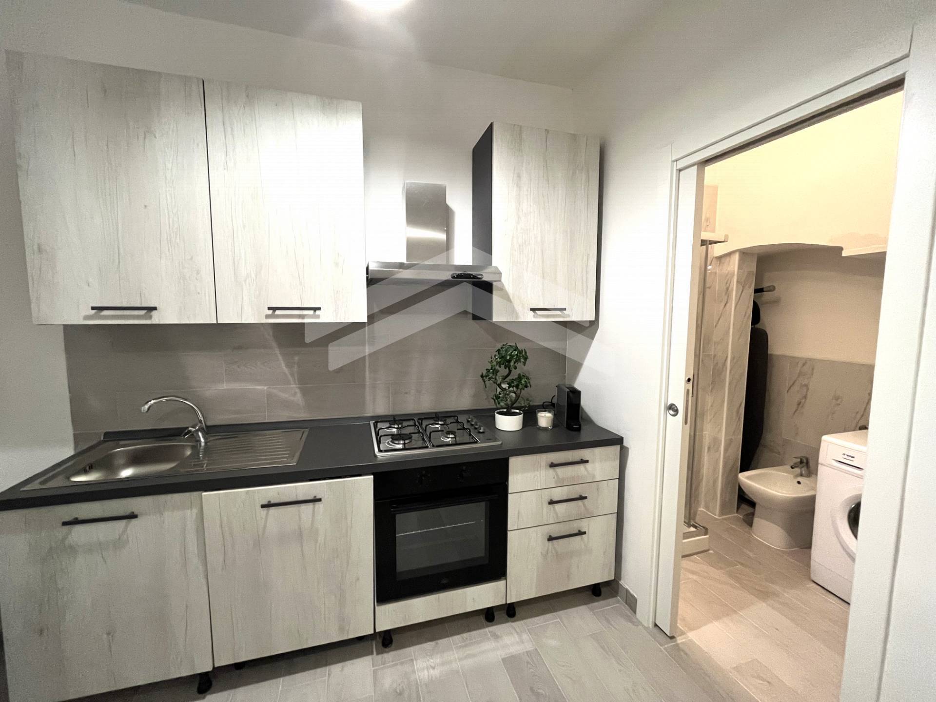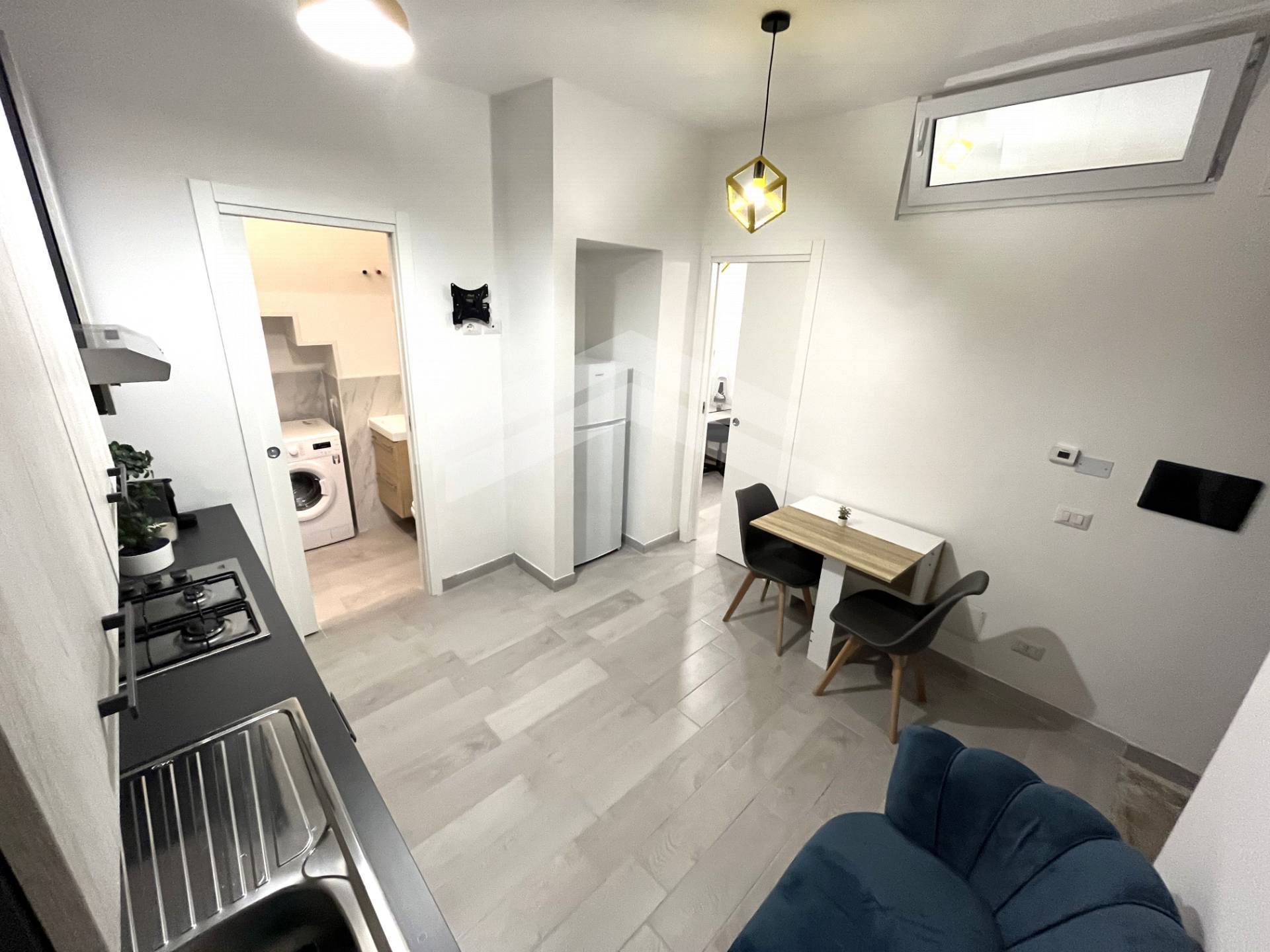 L'appartamento composto da zona giorno con angolo cottura, una camera da letto matrimoniale e un bagno.