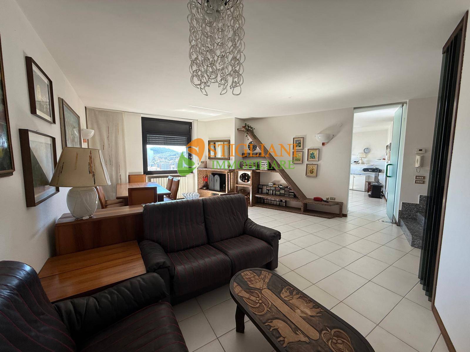 Zona centralissima, via Mazzini, appartamento su due livelli, di complessivi metri quadrati 160 circa, cos composto: al piano quinto troviamo ingresso-sala con camino, cucina abitabile, bagno e ripostiglio; al piano sesto troviamo tre camere da letto, due bagni (di cui uno in camera) e balconcino.