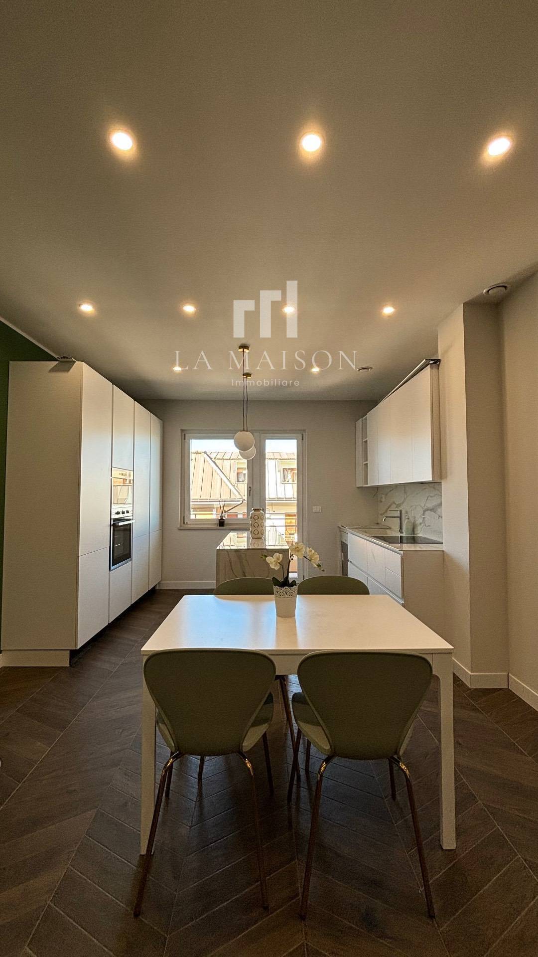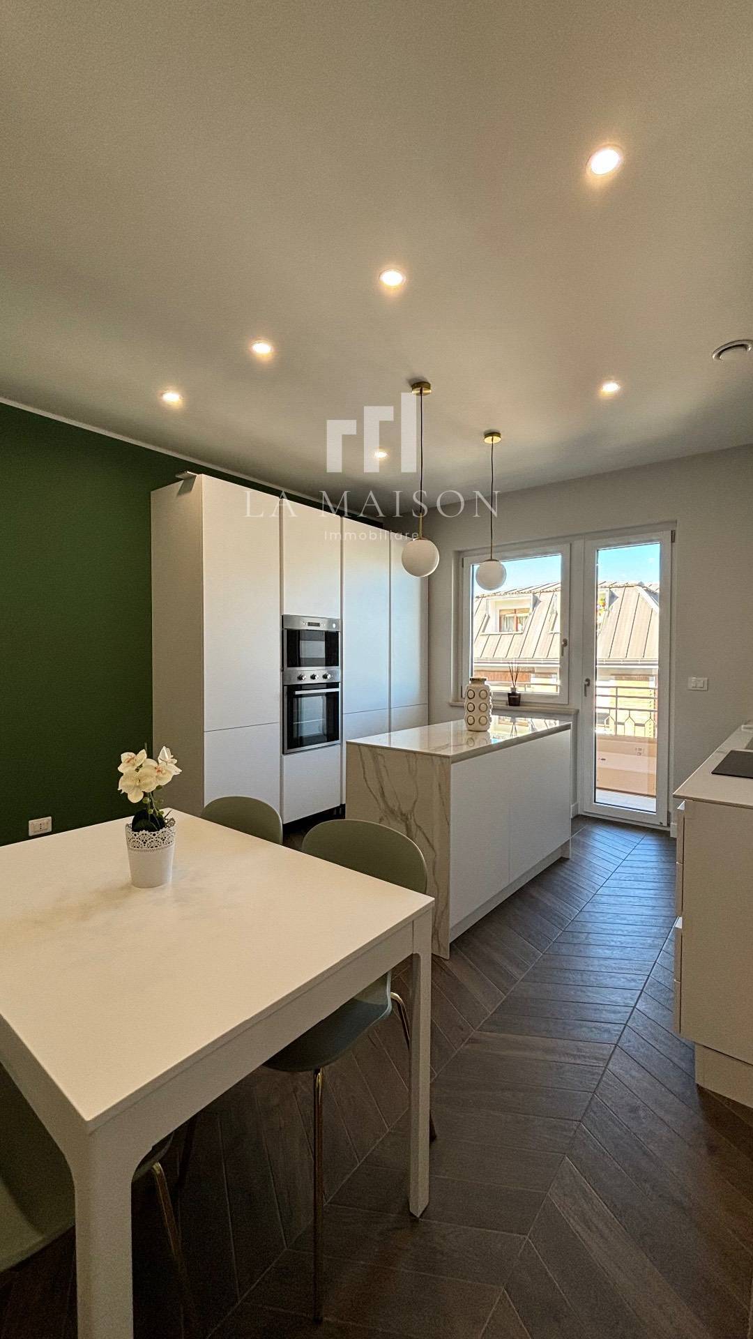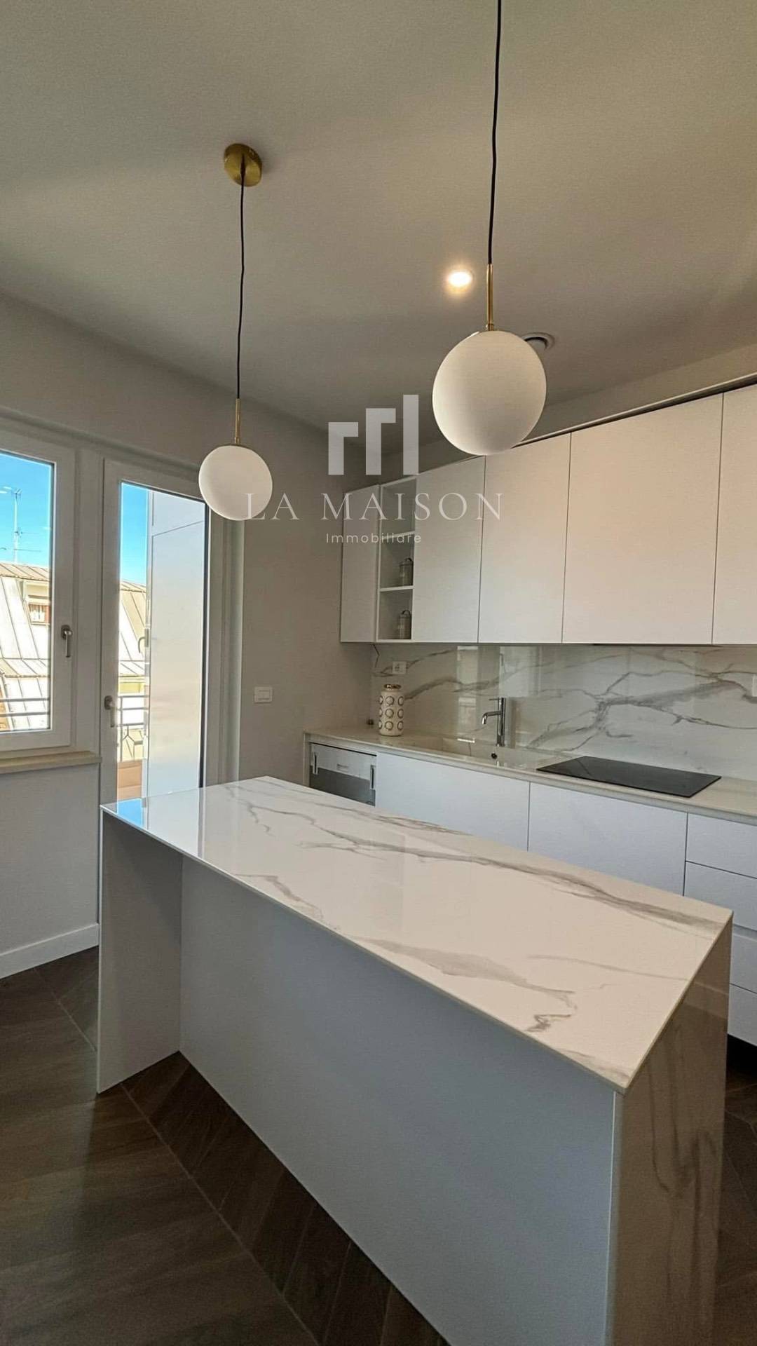 Limmobile si distingue per un ampio e luminoso soggiorno con cucina a vista dotata di splendida isola centrale, soluzione perfetta per creare un ambiente conviviale e funzionale.