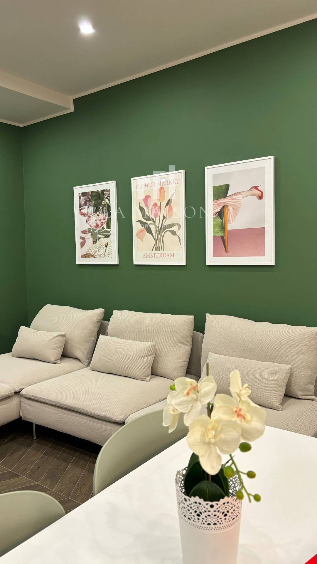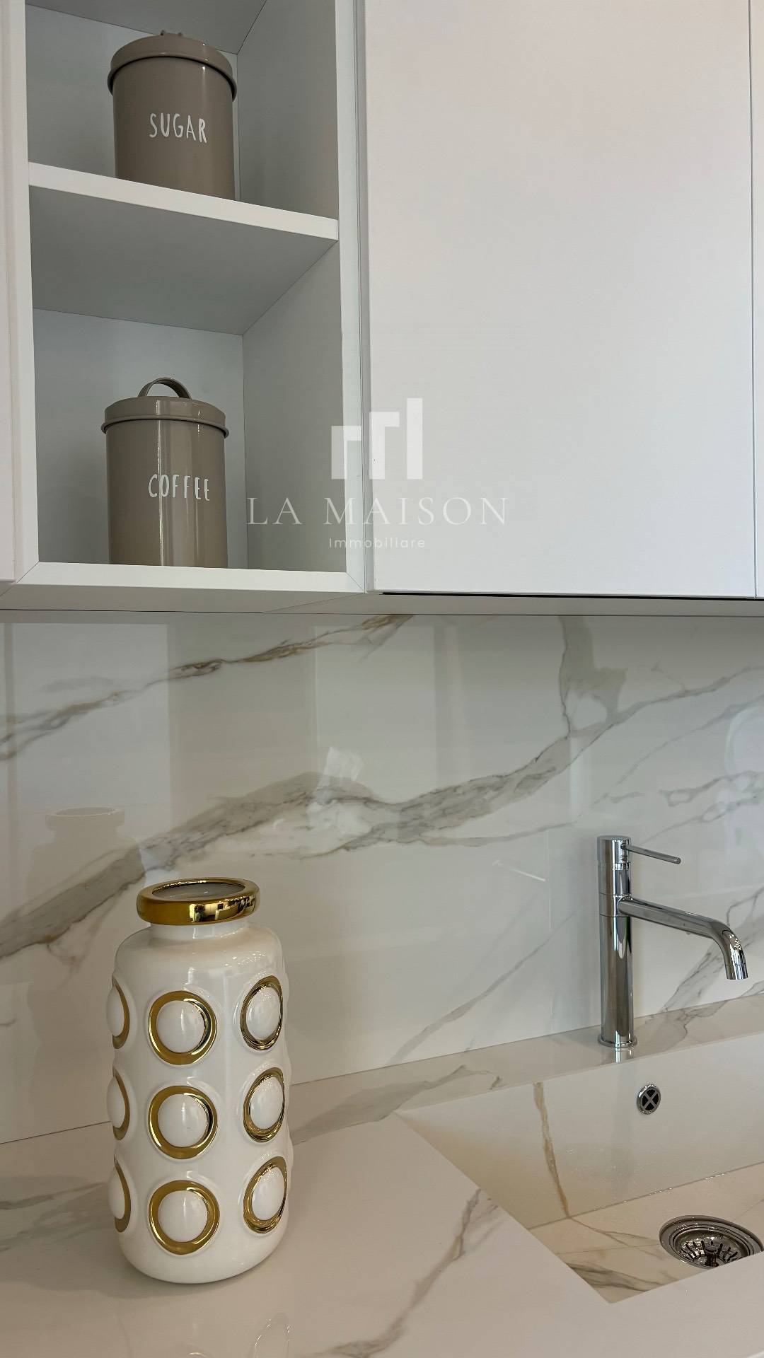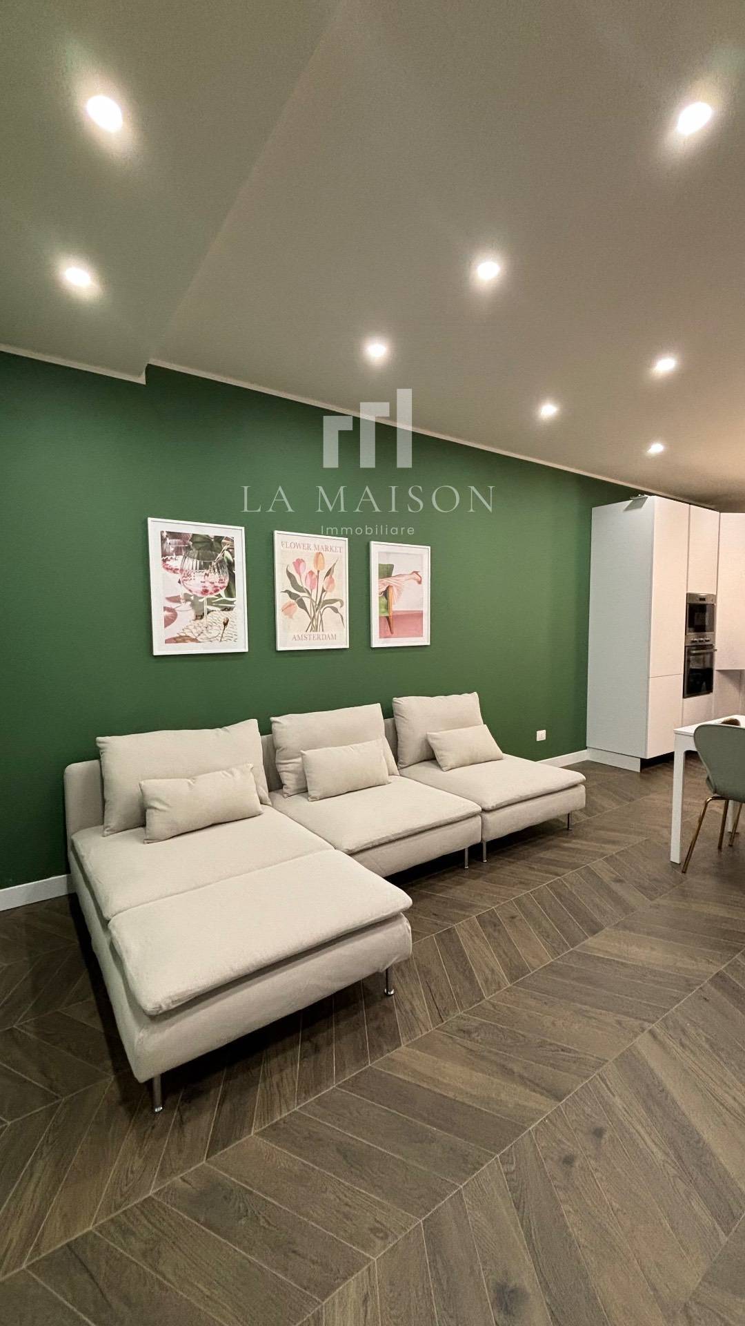 Limmobile si distingue per un ampio e luminoso soggiorno con cucina a vista dotata di splendida isola centrale, soluzione perfetta per creare un ambiente conviviale e funzionale.