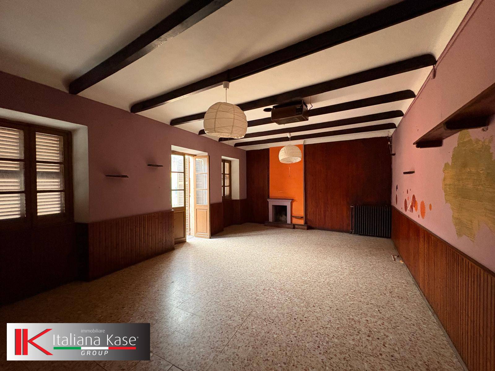 Tramite scala esterna si accede al secondo piano dove si trova un ampio appartamento composto da cucina abitabile, soggiorno, due camere da letto e un bagno.
