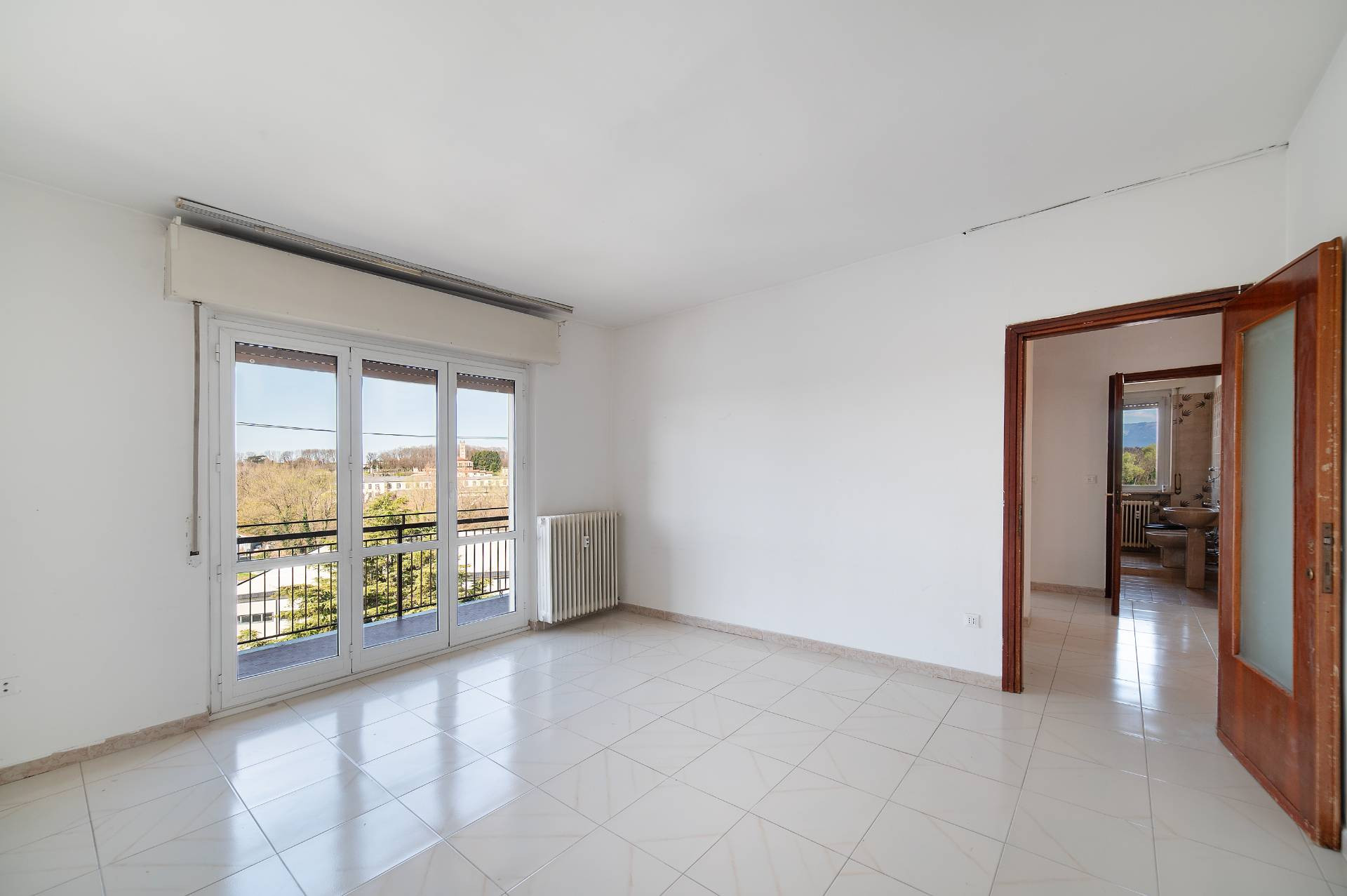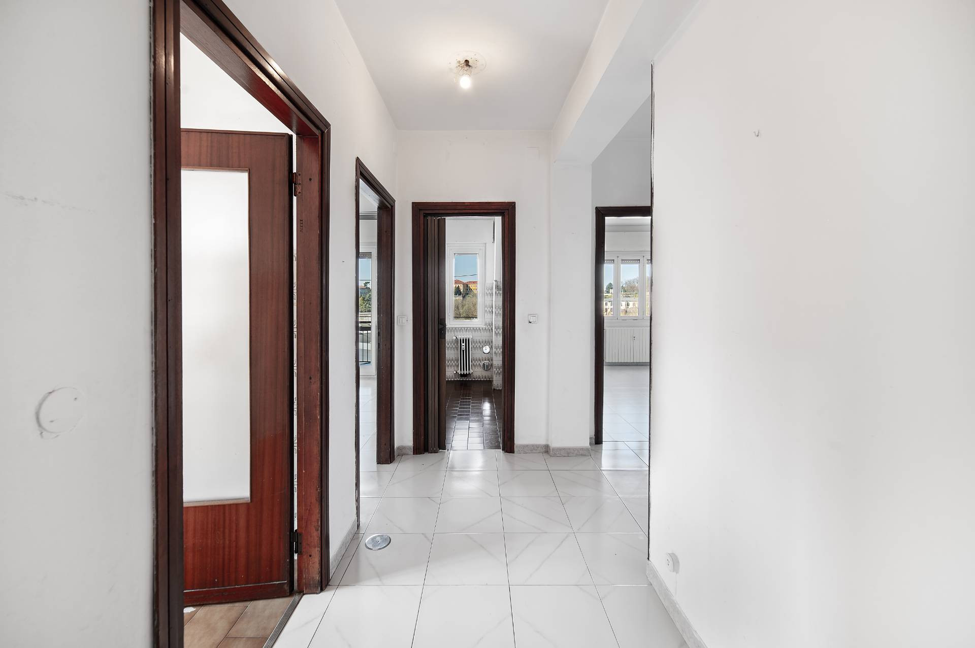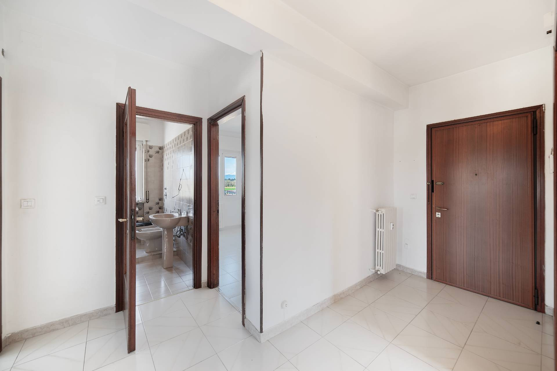dotato di una tripla esposizione e anche la disposizione ottimale, entrando c un disimpegno centrale, sulla sinistra troviamo una luminosa cucina abitabile, si passa poi allampio soggiorno, dotato di un comodo balcone con la vista aperta, proseguendo troviamo le due comode camere nella zona notte divise da un bagno centrale e per finire una lavanderia (con finestra), facilmente trasformabile in un secondo bagno.
