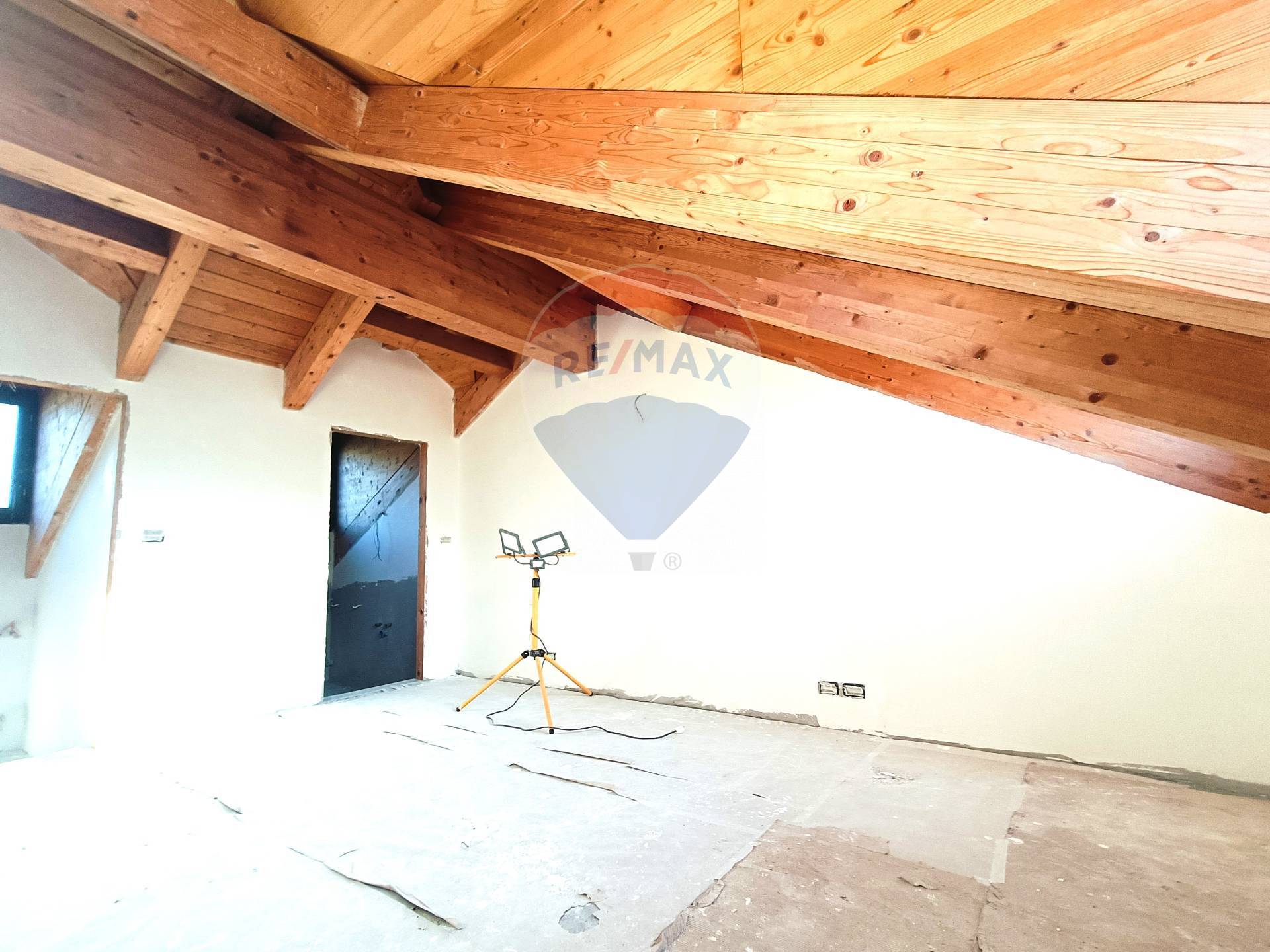 Salendo al piano mansardato, troverai una romantica camera da letto matrimoniale, caratterizzata da travi a vista che conferiscono all'ambiente un'atmosfera calda e accogliente.