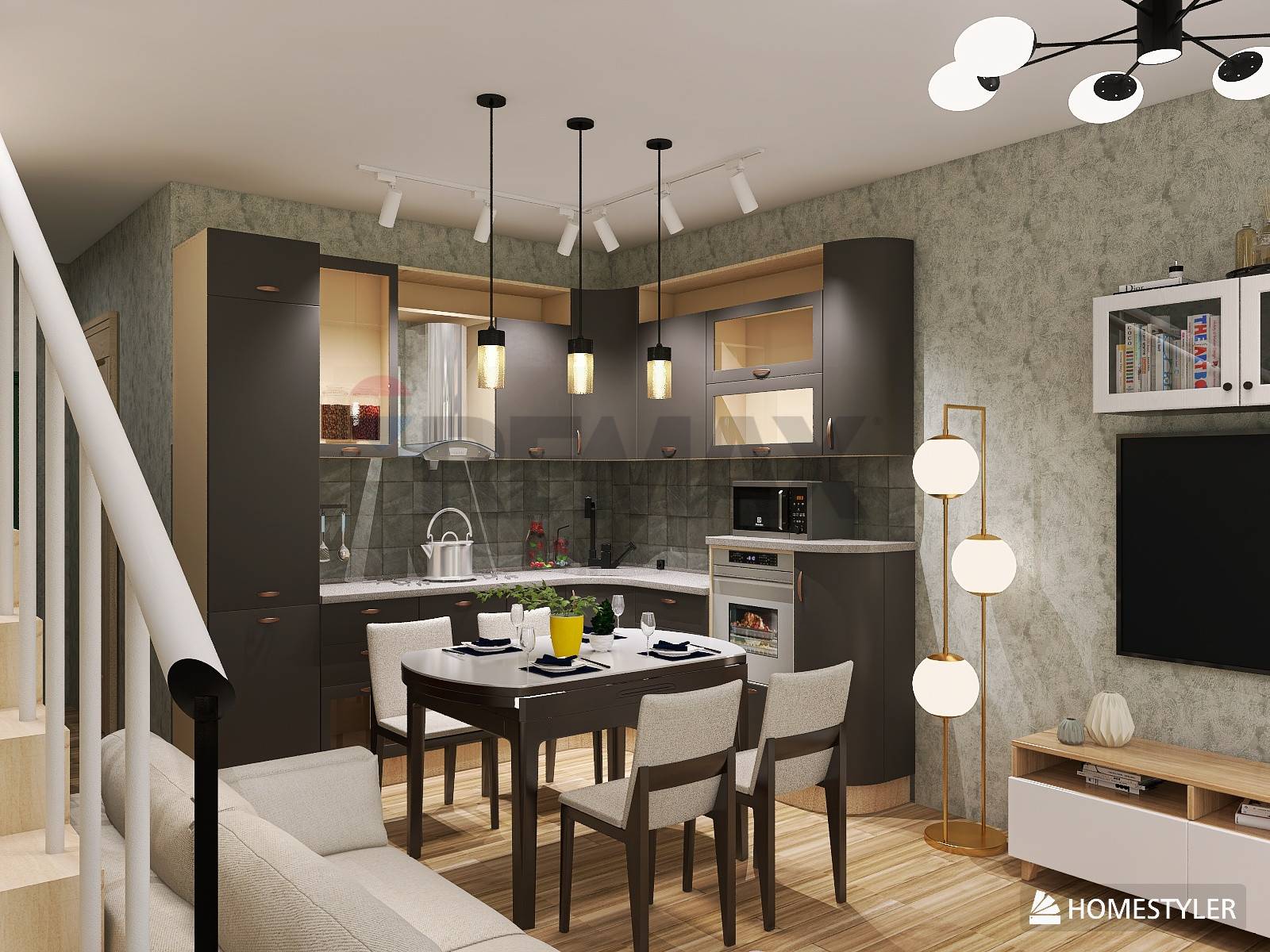 L'alloggio, di 70 mq, si sviluppa su due livelli, inondato dalla luce naturale che filtra dalle ampie finestre.
