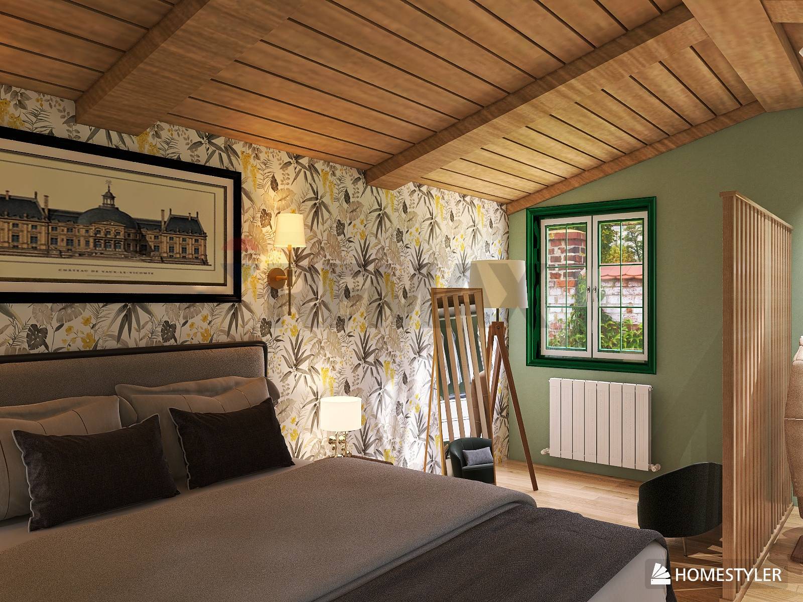 Salendo al piano mansardato, troverai una romantica camera da letto matrimoniale, caratterizzata da travi a vista che conferiscono all'ambiente un'atmosfera calda e accogliente.