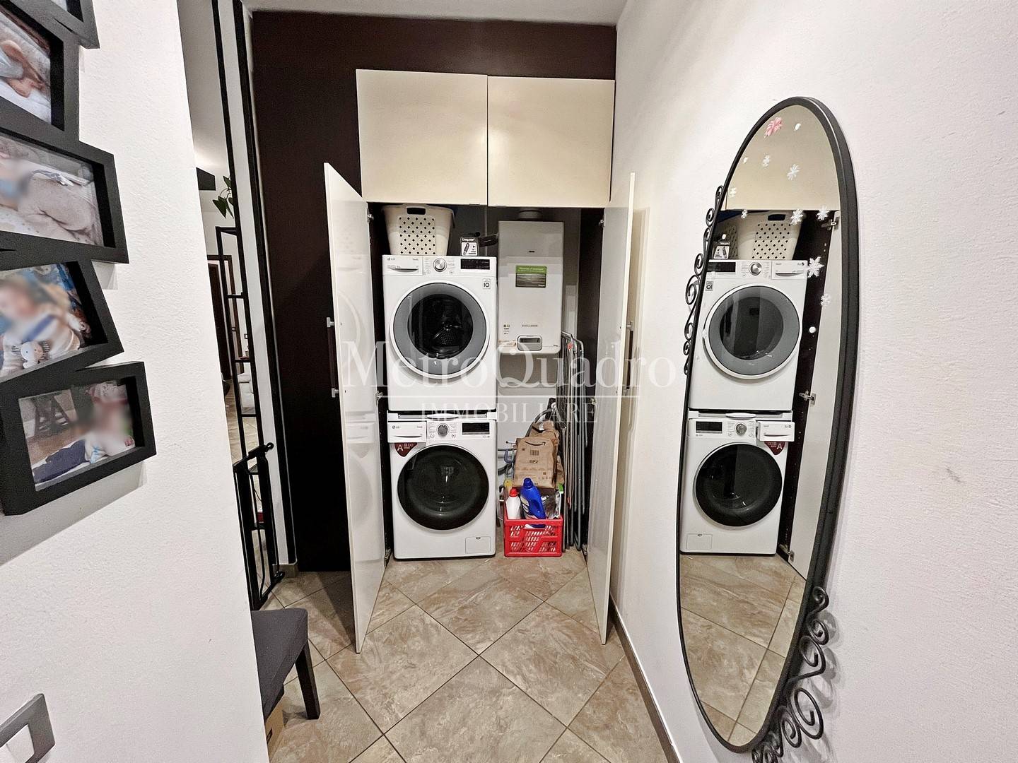 Nel disimpegno all'ingresso dell'appartamento si trova un funzionale ripostiglio ed un'armadiatura su misura al cui interno sono posizionate lavatrice ed asciugatrice, la zona giorno composta da un ampio locale openspace di soggiorno con cucina a vista da cui possiamo accedere al grande giardino di circa 200 mq in parte pavimentato ed in parte a prato e piantumato, l'esposizione a sud/est rende quest'area soleggiata e ideale per momenti di relax o di svago con famiglia e amici.