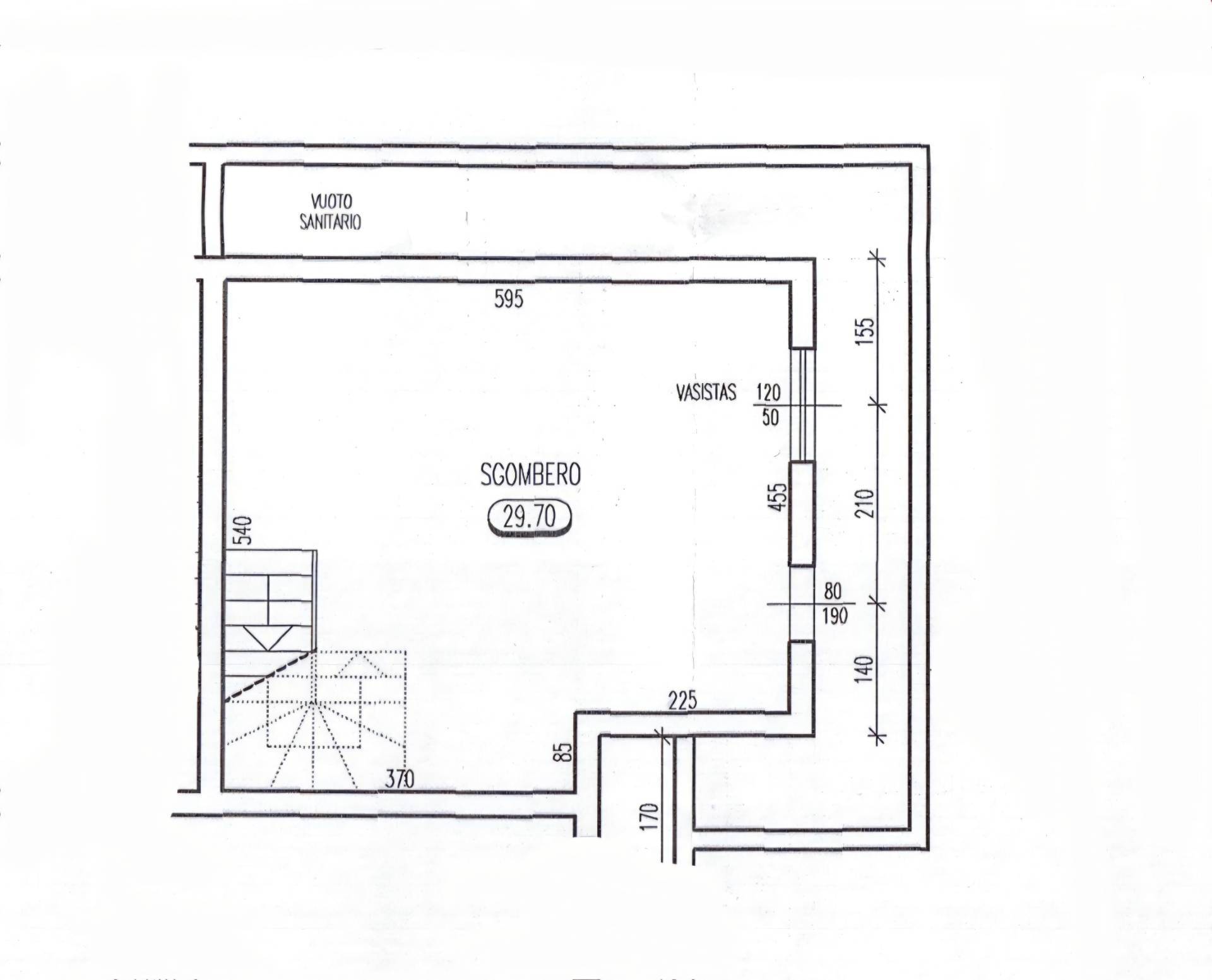 Al piano interrato si trova un ampio open space di 30 mq da adibire a zona giorno o sala riunioni.
