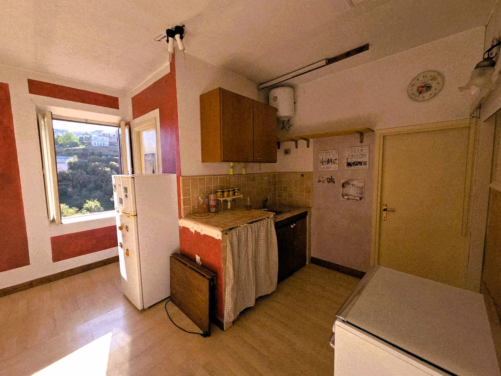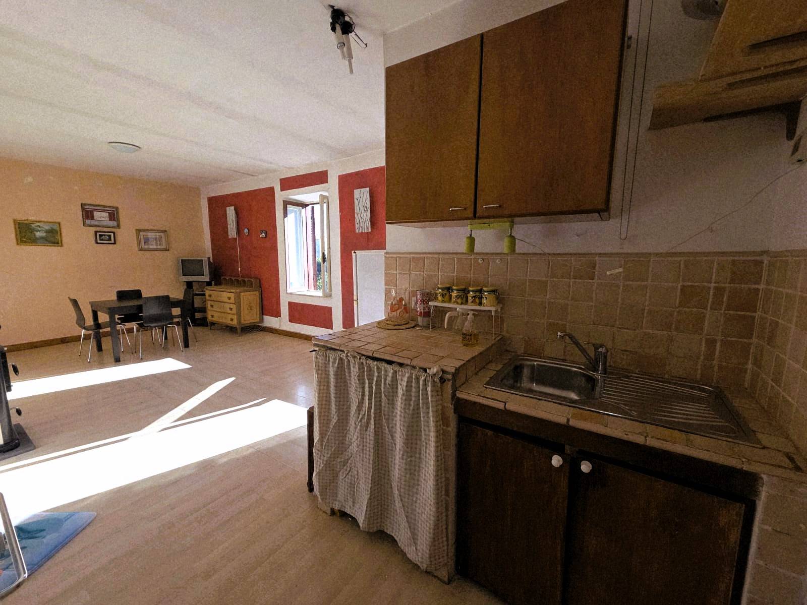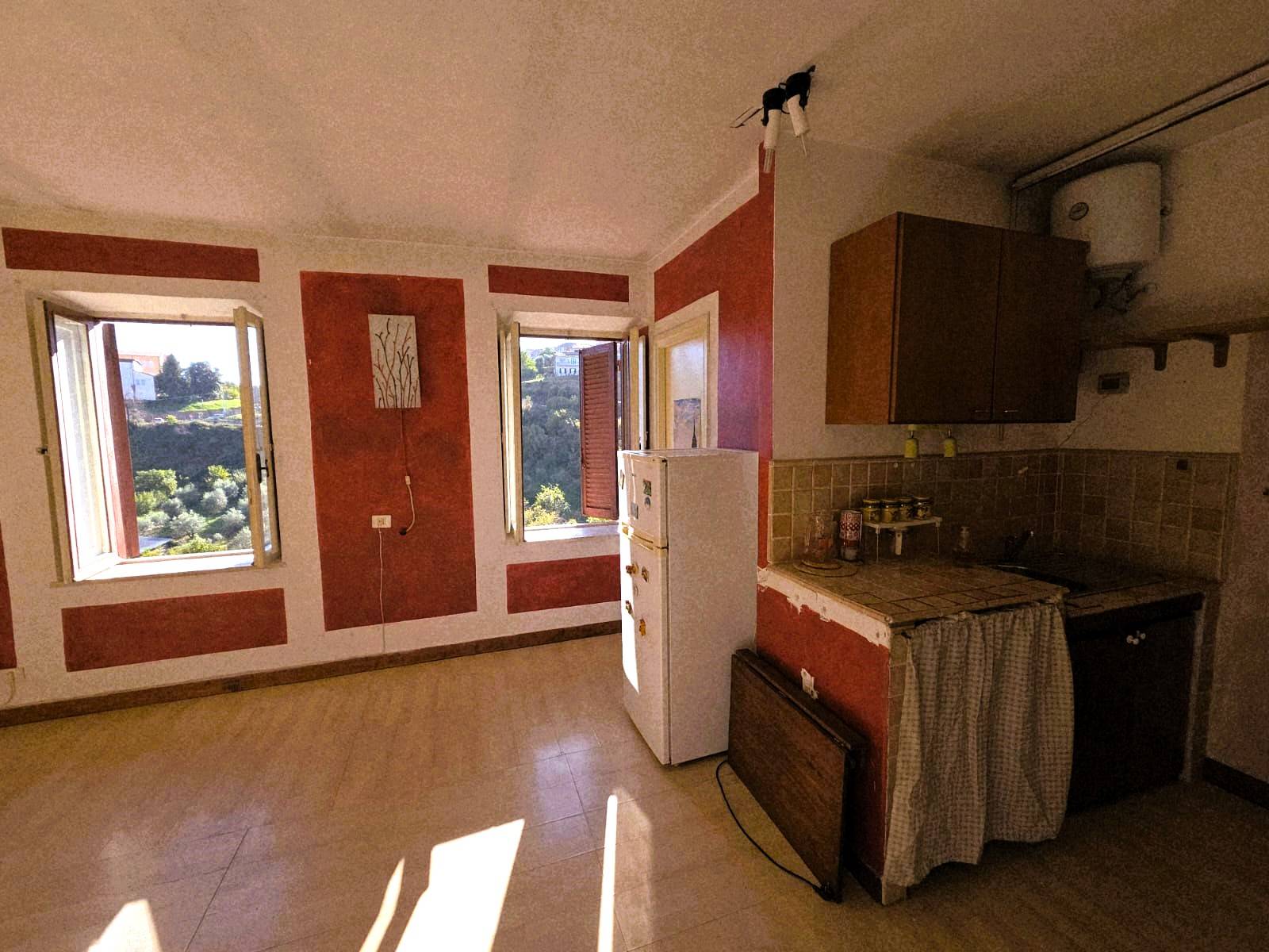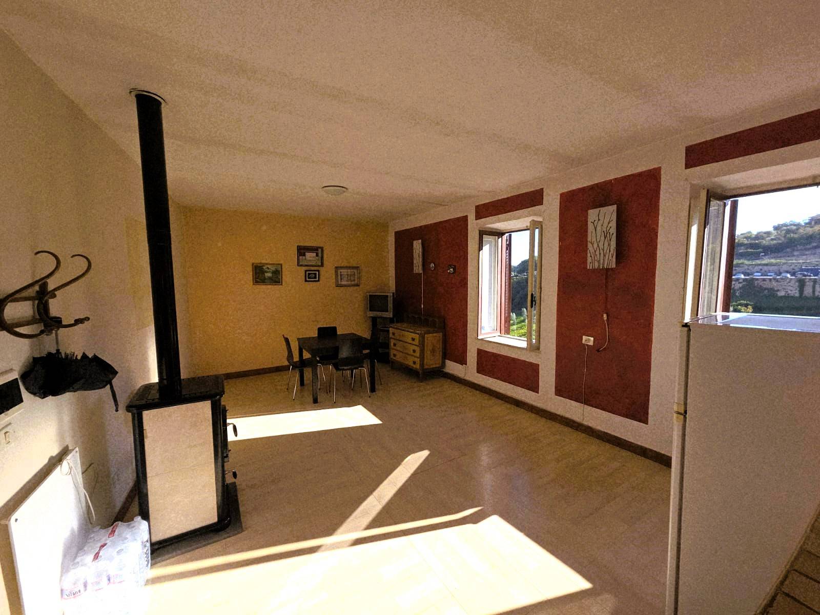 L'ingresso indipendente conduce direttamente in un ampio soggiorno accogliente, arricchito da un angolo cottura in muratura e da due ampie finestre panoramiche che regalano una vista mozzafiato sulla vallata circostante.