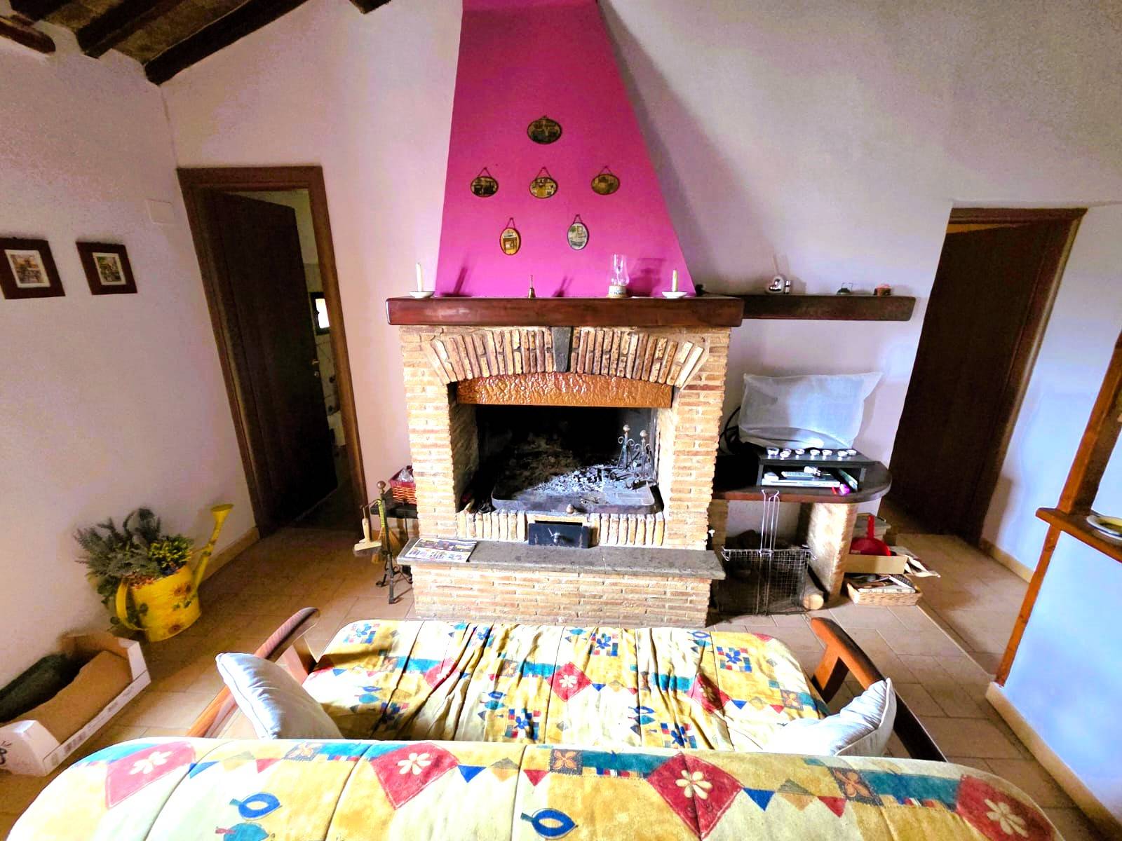 Si accede in un ampio soggiorno con angolo cottura in muatura e camino, camera da letto, cameretta e bagno.