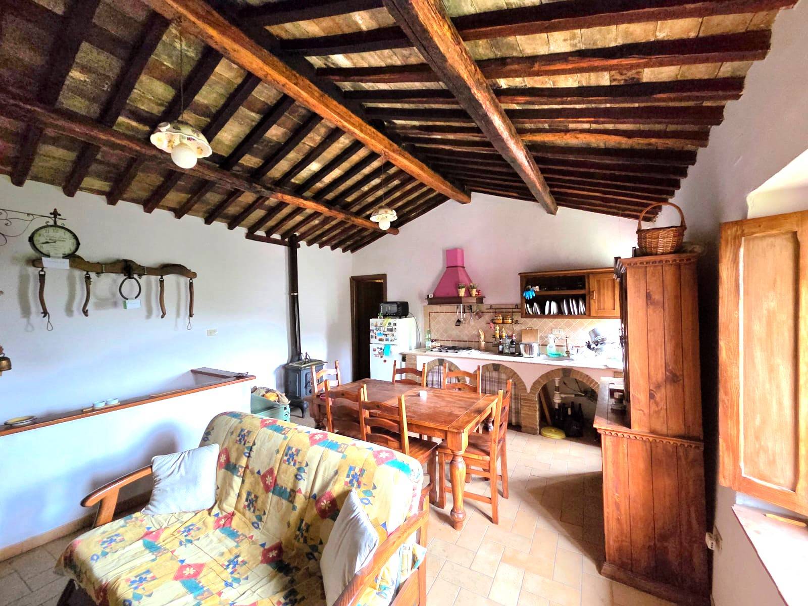 Si accede in un ampio soggiorno con angolo cottura in muatura e camino, camera da letto, cameretta e bagno.