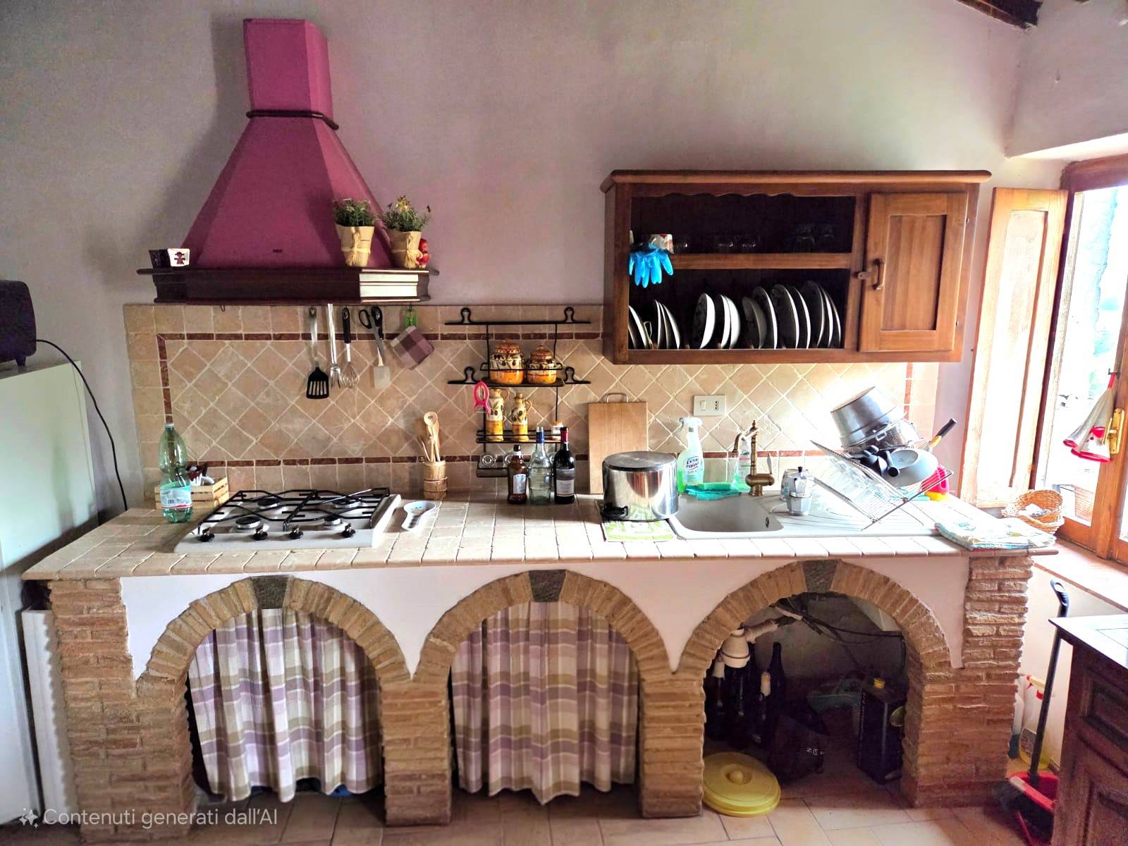 I soffitti rivestiti in cotto ed i dettagli in pietra e legno conferiscono un'atmosfera calda e accogliente, perfetta per godere di momenti di relax e convivialit con familiari e amici.