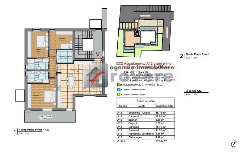 SUPERFICI: Appartamento 138,60 mq x 100%= 138,60 mq Terrazzo 16,05 mq x 33%= 5,35 mq Garage(N.3) 18,29 mq x 60%= 10,94 mq Posti auto scoperti 25,00 mq x 15%= 3,75 mq Totale superficie commerciale 158,64 mq Rif. immobile N. 1869 Contatta l'inserzionista