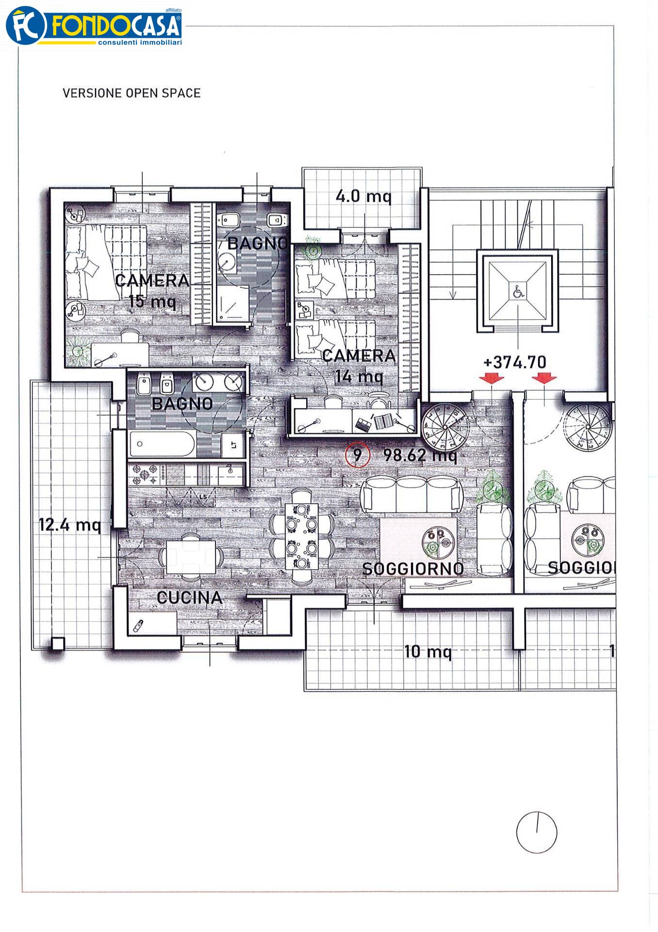 Quattro unit al piano terra con ampio giardino (vedi appartamento 1) Quattro unit al piano primo con tre balconi (vedi appartamento 5) Quattro unit al piano secondo con tre balconi (vedi appartamento 9) mansarde da abbinare agli alloggi.