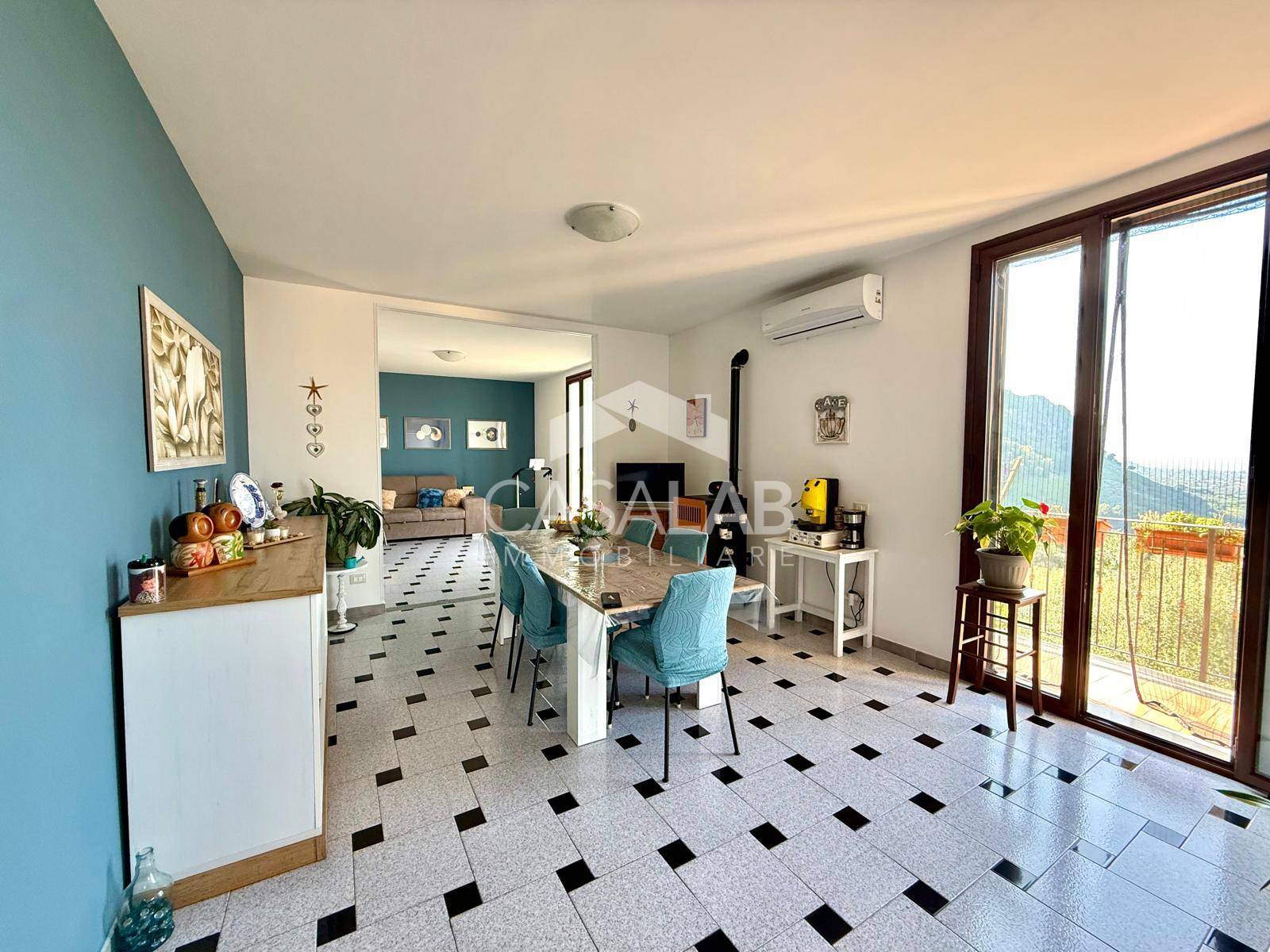 Caratteristiche interne: Lingresso si apre su disimpegno che conduce alla luminosa zona giorno, composta da cucina con accesso ad un comodo terrazzino dove poter godere di una vista panoramica mozzafiato, ampio soggiorno ( pari a due stanze), luminoso grazie alle sue porta-finestre che permettono una luce naturale costante.