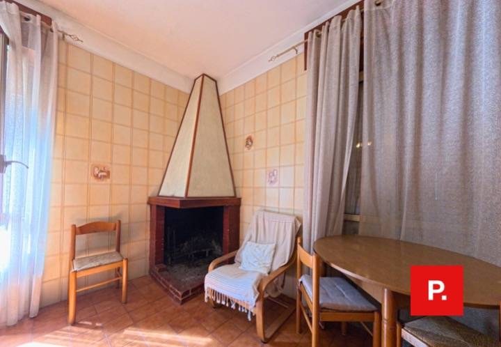 La zona giorno composta da un accogliente tinello con camino e area pranzo, collegato a una cucina separata, sviluppata in un ambiente pratico e funzionale.