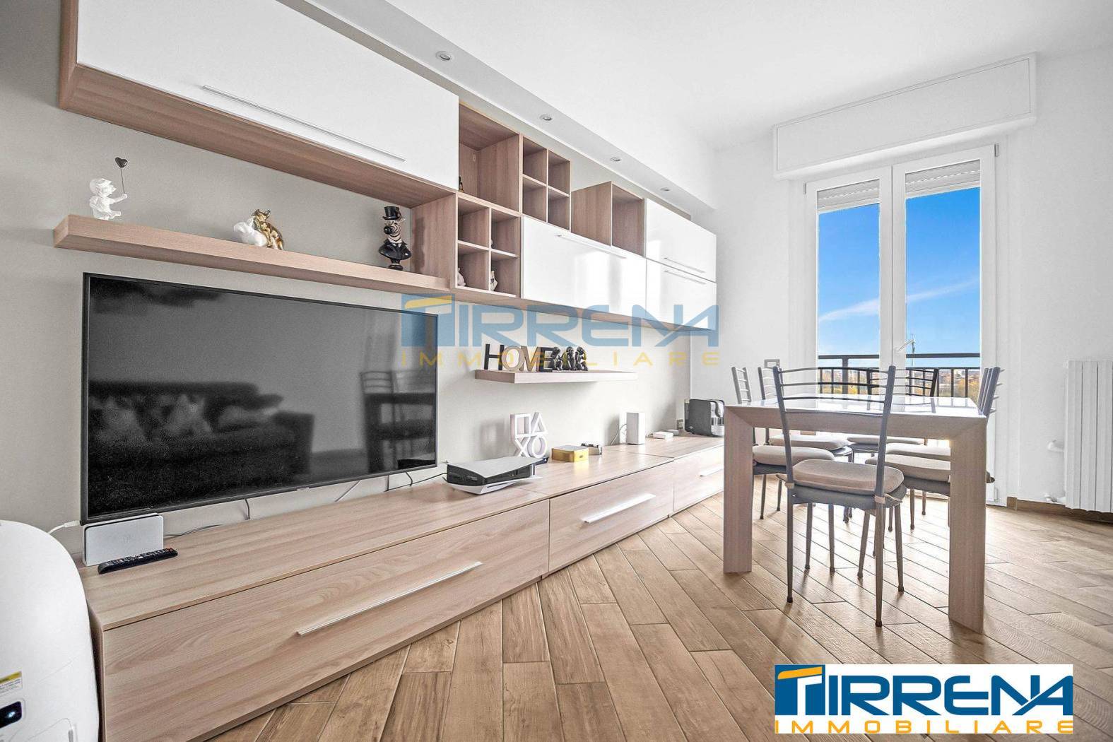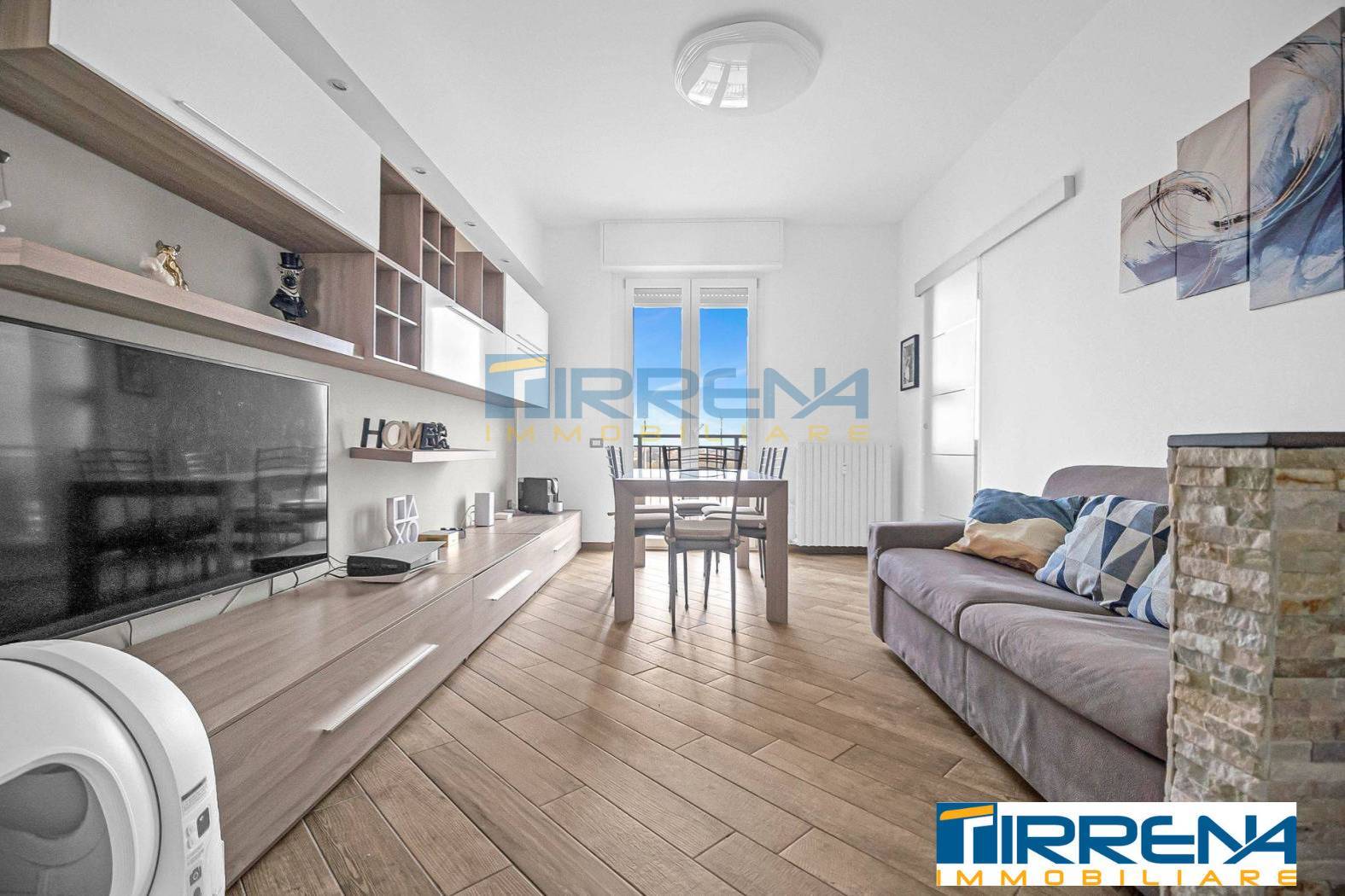 Internamente composto da ingresso in ampio salone con balcone e cucinotto con finestra; dal disimpegno notte si accede al reparto notte dove troviamo due camere, di cui una allestita come cameretta, e un bagno finestrato rifinito con piatto doccia moderno.
