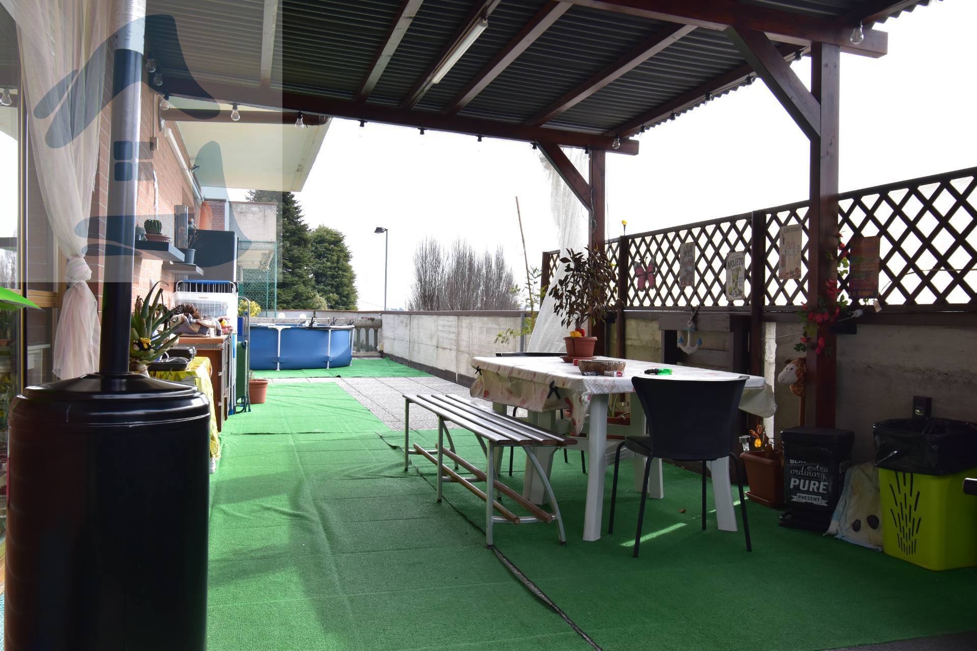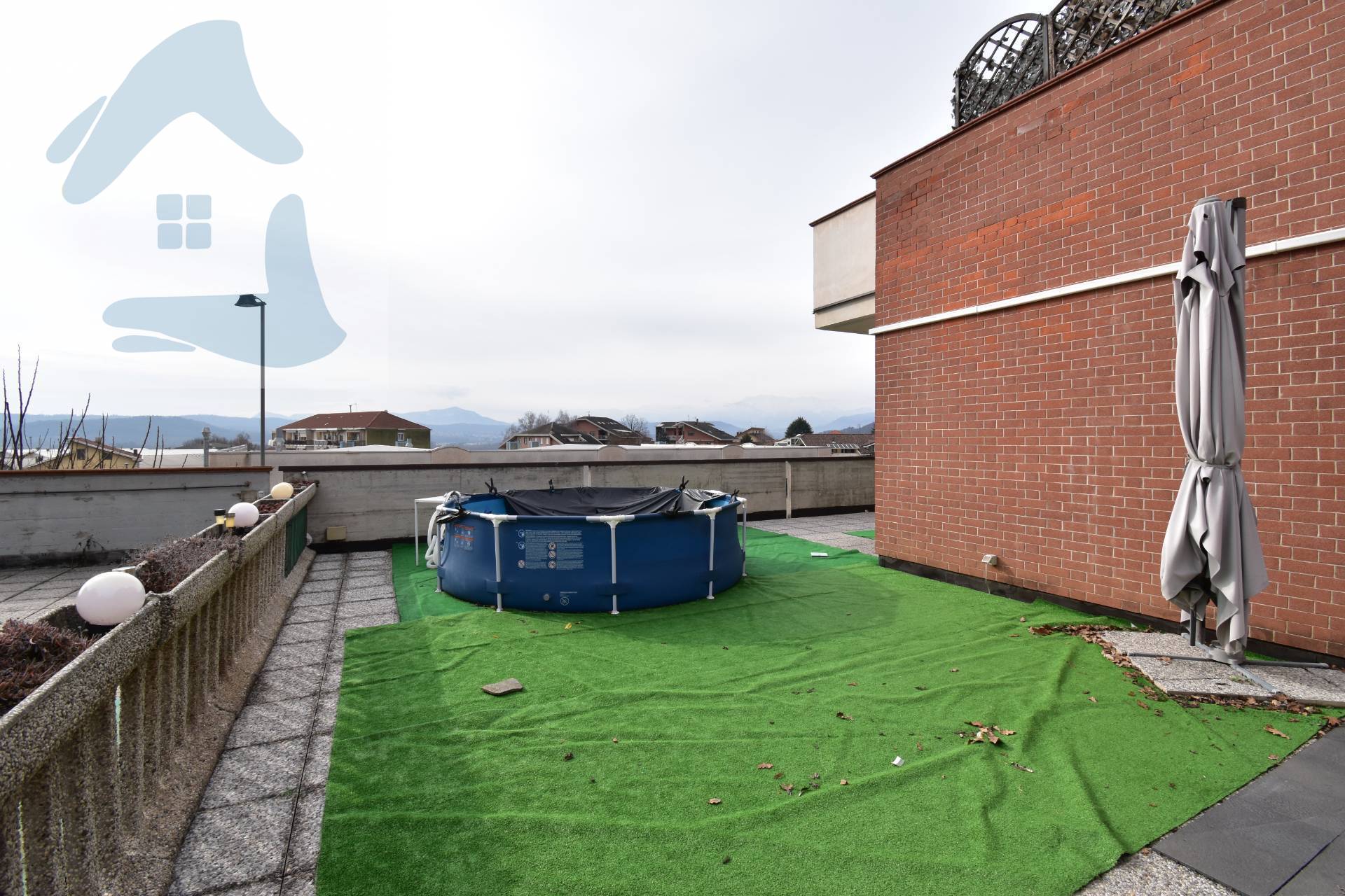 Punto di forza della propriet il terrazzo panoramico con splendida vista aperta sulla valle e sul Castello di Rivoli, perfetto per pranzi, cene allaperto e momenti di relax.