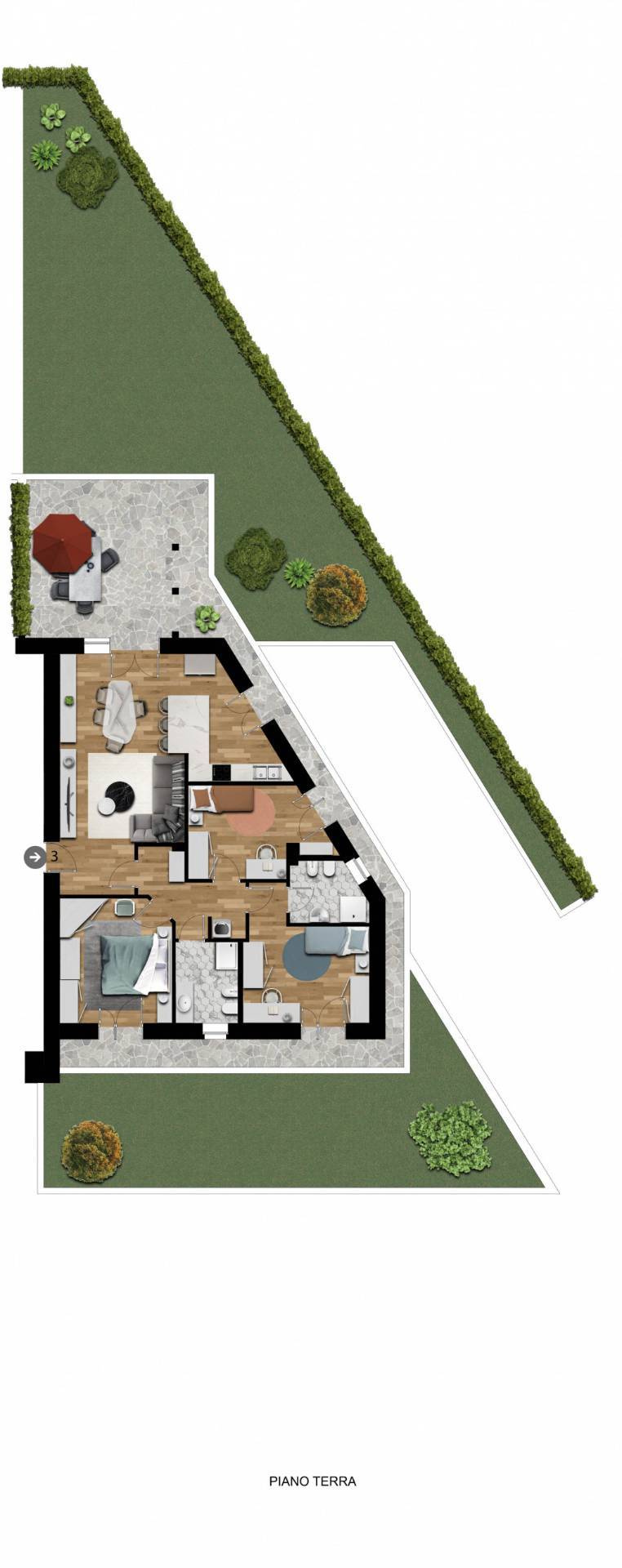Appartamento di nuova realizzazione con ampio giardino privato angolare Allinterno dellesclusivo complesso residenziale di sole 11 unit, proponiamo appartamento al piano terra con ampio giardino privato angolare, ideale per chi desidera grandi spazi esterni e massima privacy.