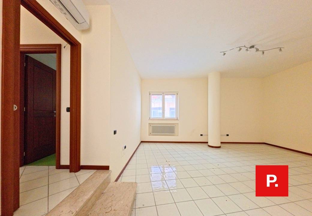 L'appartamento attualmente a destinazione ufficio composto da ampio salone all'ingresso, tre vani, doppio servizio e ripostiglio.